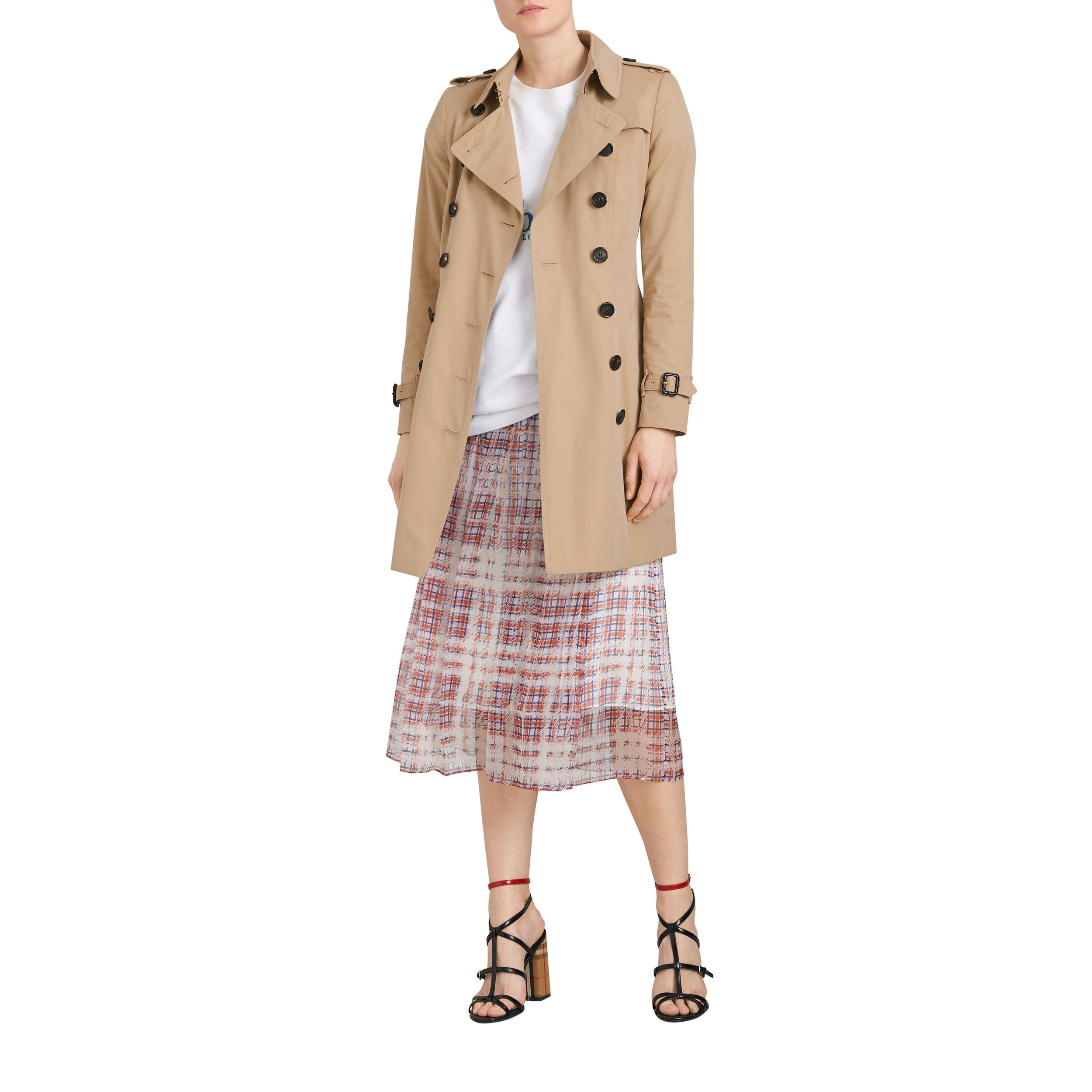 Trench-coat The Chelsea confectionné en gabardine de coton, arborant une coupe ultra-ajustée. Le modèle tendance est agrémenté d'une taille cintrée. Imaginée par Thomas Burberry en 1879, la gabardine de coton est une étoffe résistante aux intempéries, à mailles très serrées, protégeant contre les éléments. Le trench-coat peut être porté ceinturé ou ouvert par-dessus une robe ou un jean pour un style décontracté. Cette pièce intemporelle vous accompagnera tout au long de l'année. Le manteau est orné d'un dessous de col à motif check iconique évoquant les archives Burberry.