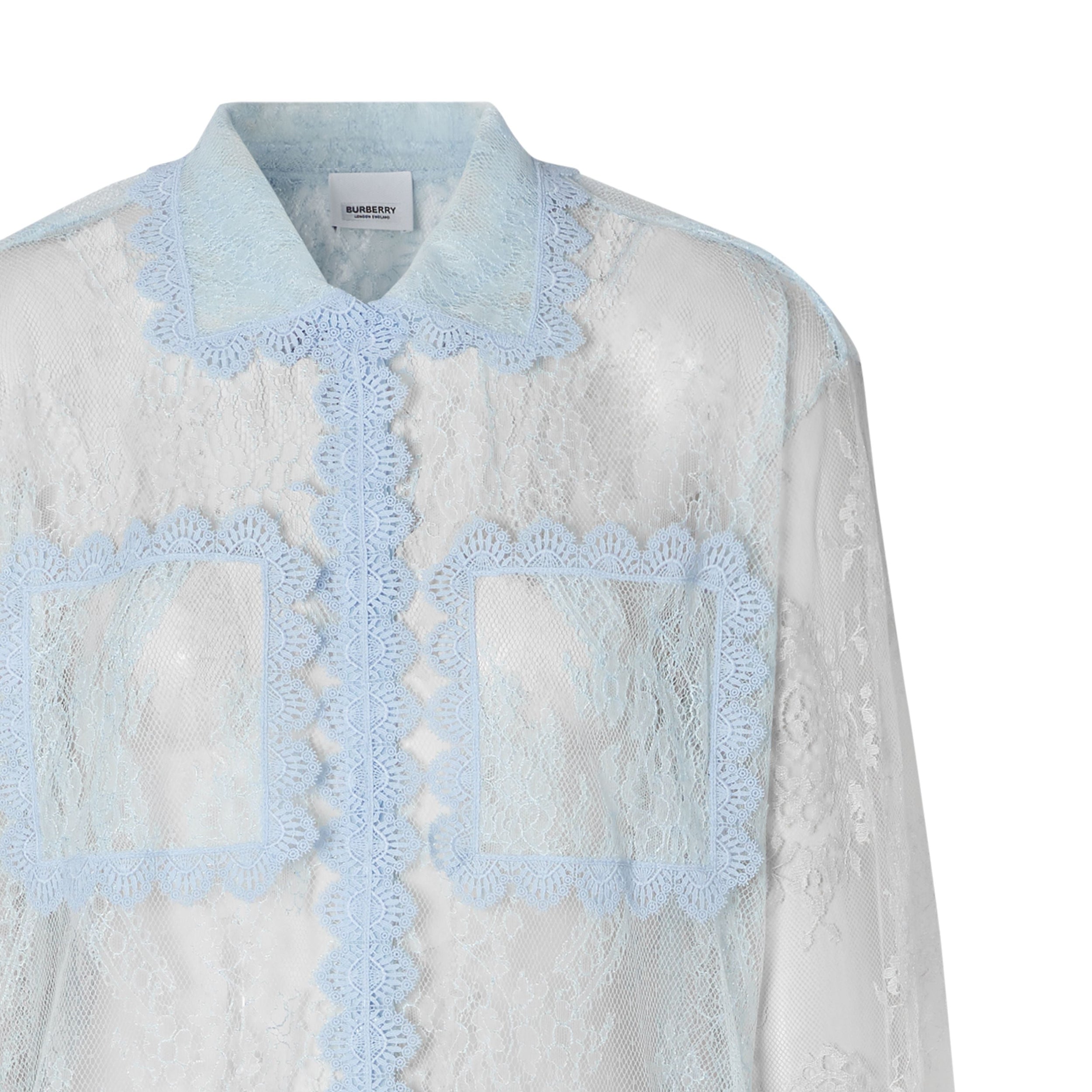 Cette élégante chemise bicolore en dentelle de Chantilly est agrémentée de bordures festonnées.