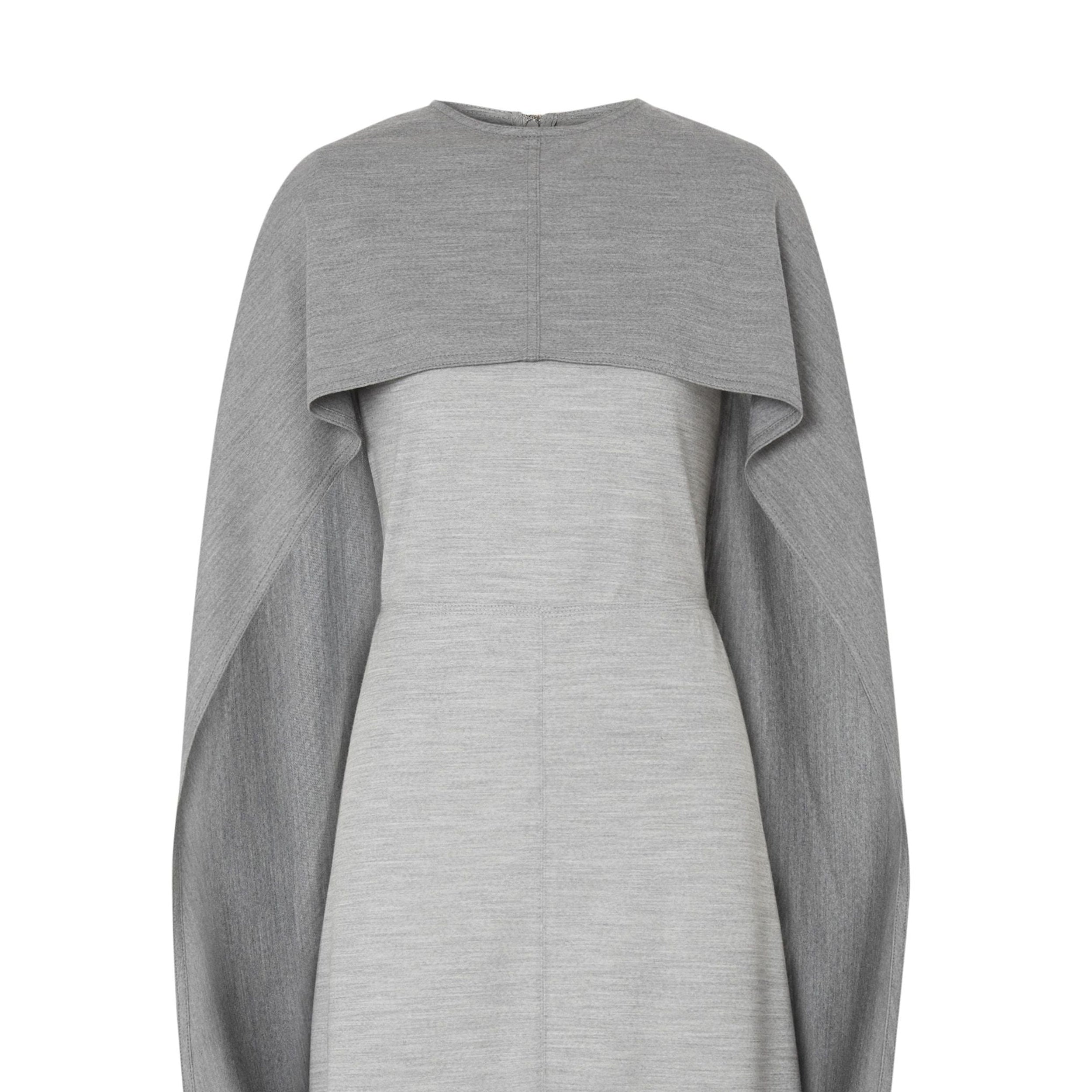 Robe droite en jersey de laine technique, agrémentée d'un détail façon cape superposé de couleur assortie.