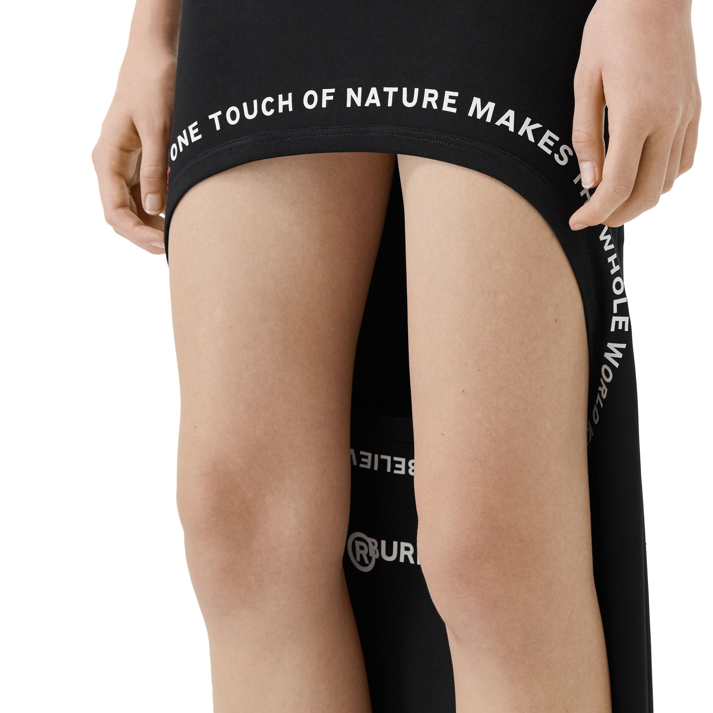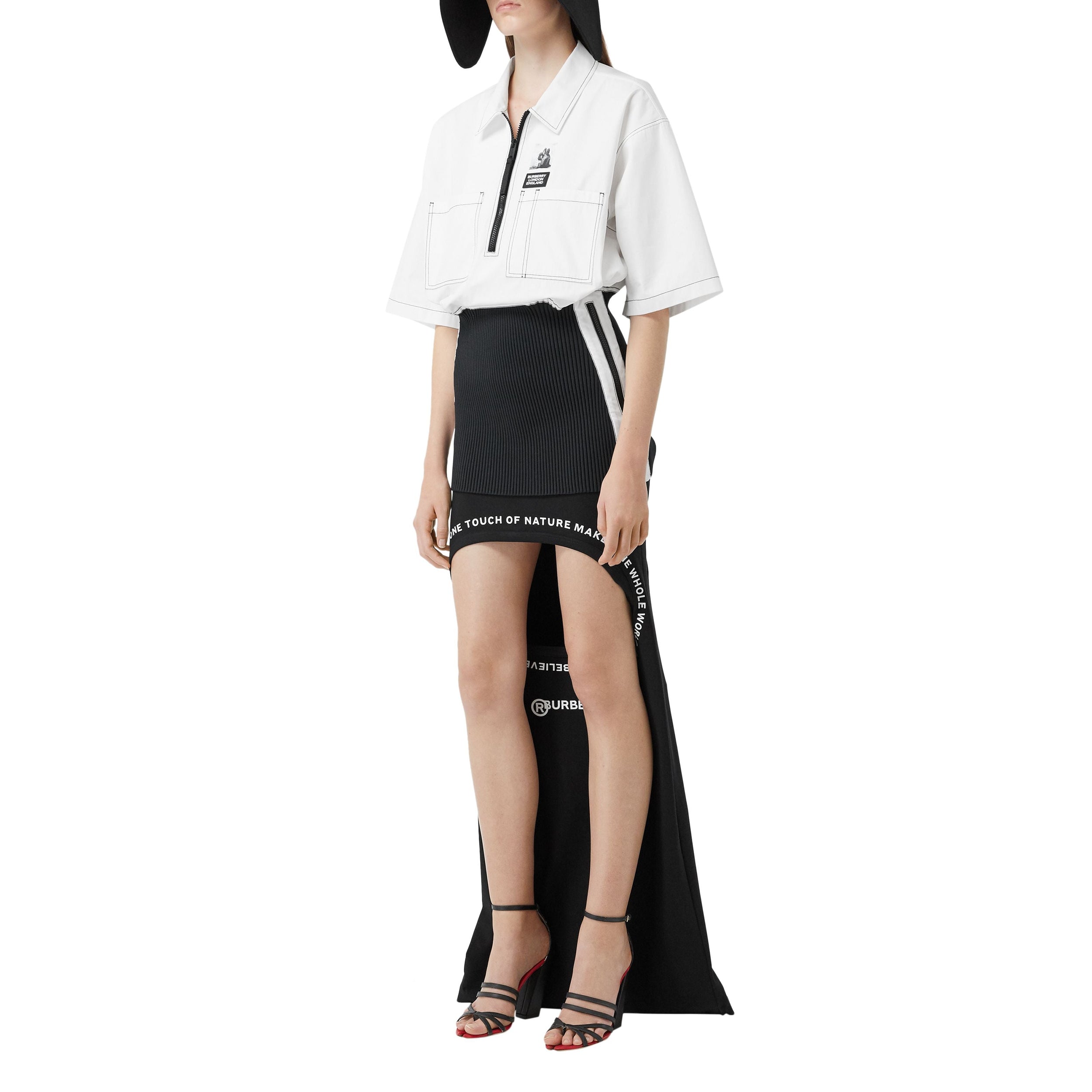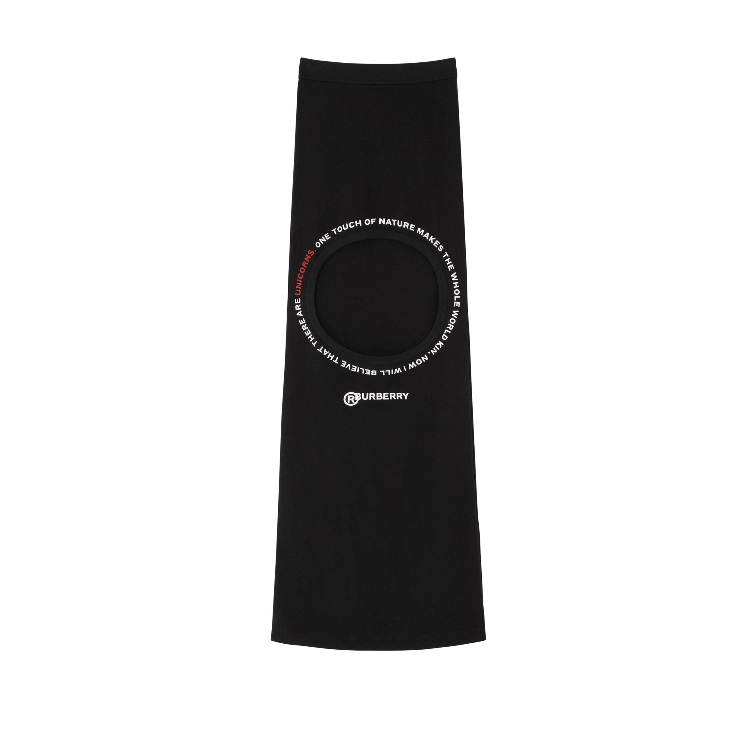 Cette jupe droite ultralongue à large ouverture est confectionnée en jersey stretch. La pièce est agrémentée de notre nouveau logo et d'un mélange d'extraits des pièces « La Tempête » et « Troïlus et Cressida » de William Shakespeare.