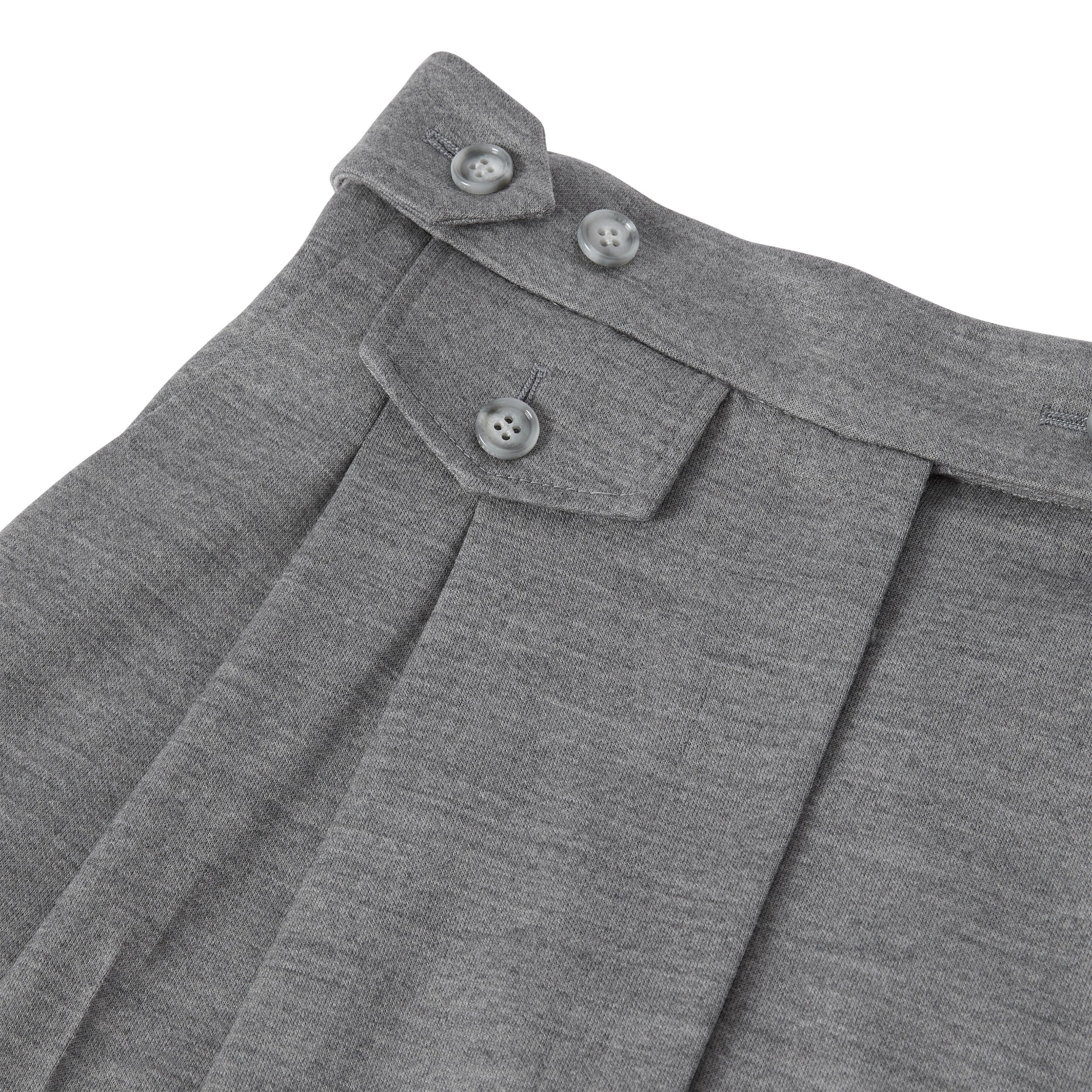 Ce pantalon à double pli est confectionné en jersey de laine. La pièce taille haute est soulignée d'une découpe dans le dos et d'un détail ceinturé.