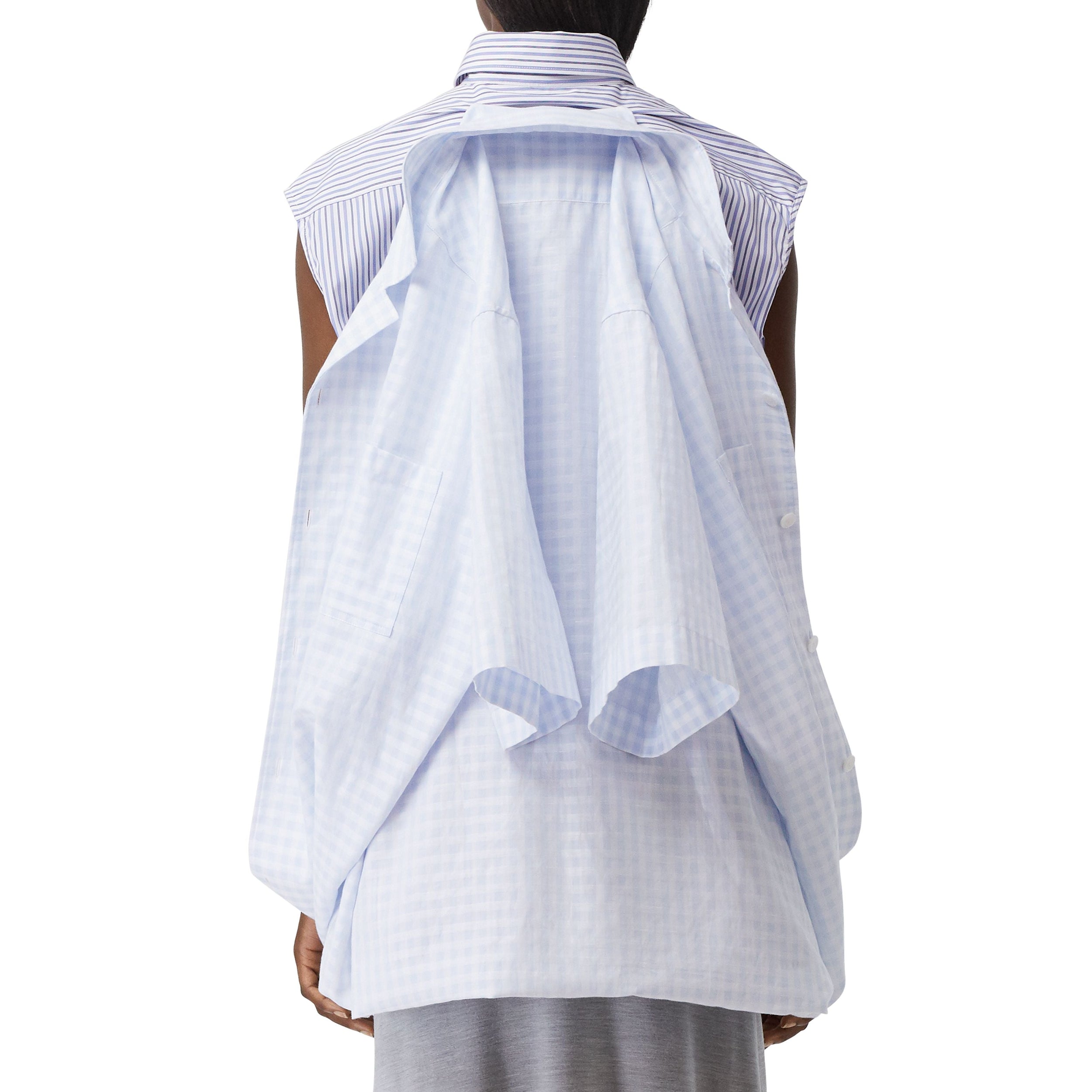 Cette double chemise oversize en coton et lin arbore des carreaux vichy et des rayures à l'effet contrasté ainsi qu'un imprimé Portrait victorien et notre logo. Portez-la ouverte pour créer une silhouette ultra longue.