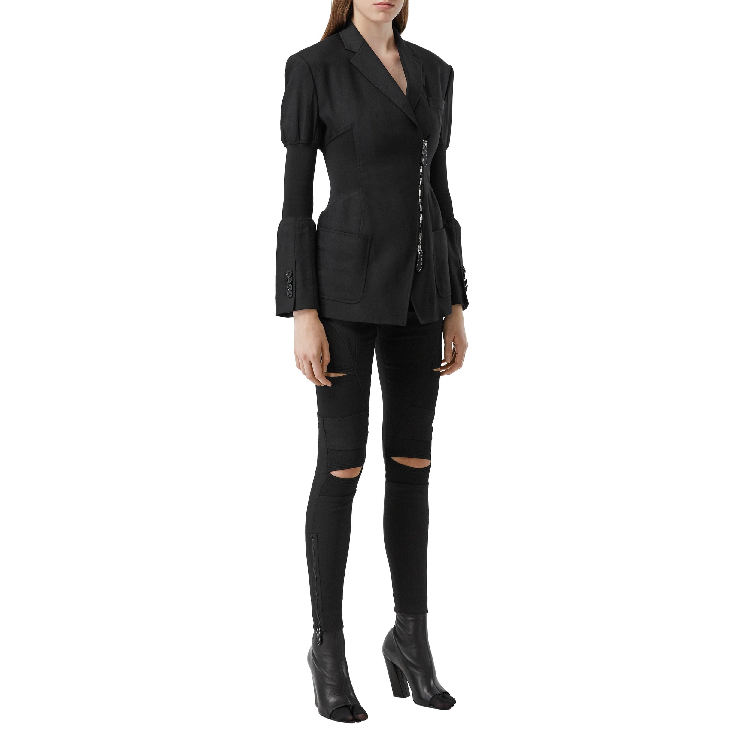 Pantalon ajusté à effet seconde peau confectionné en sergé technique, agrémenté de panneaux en maille à découpes et de chevilles zippées.