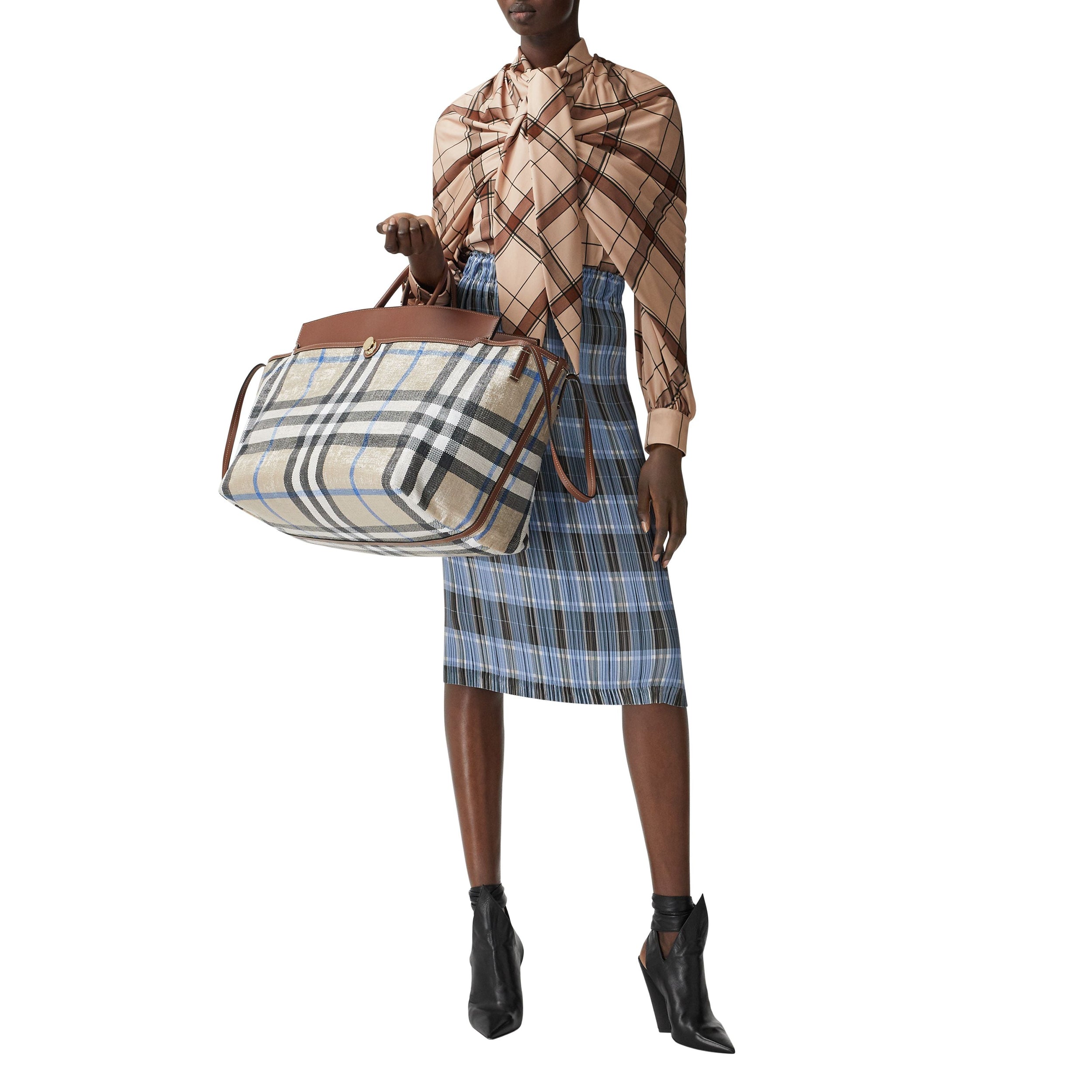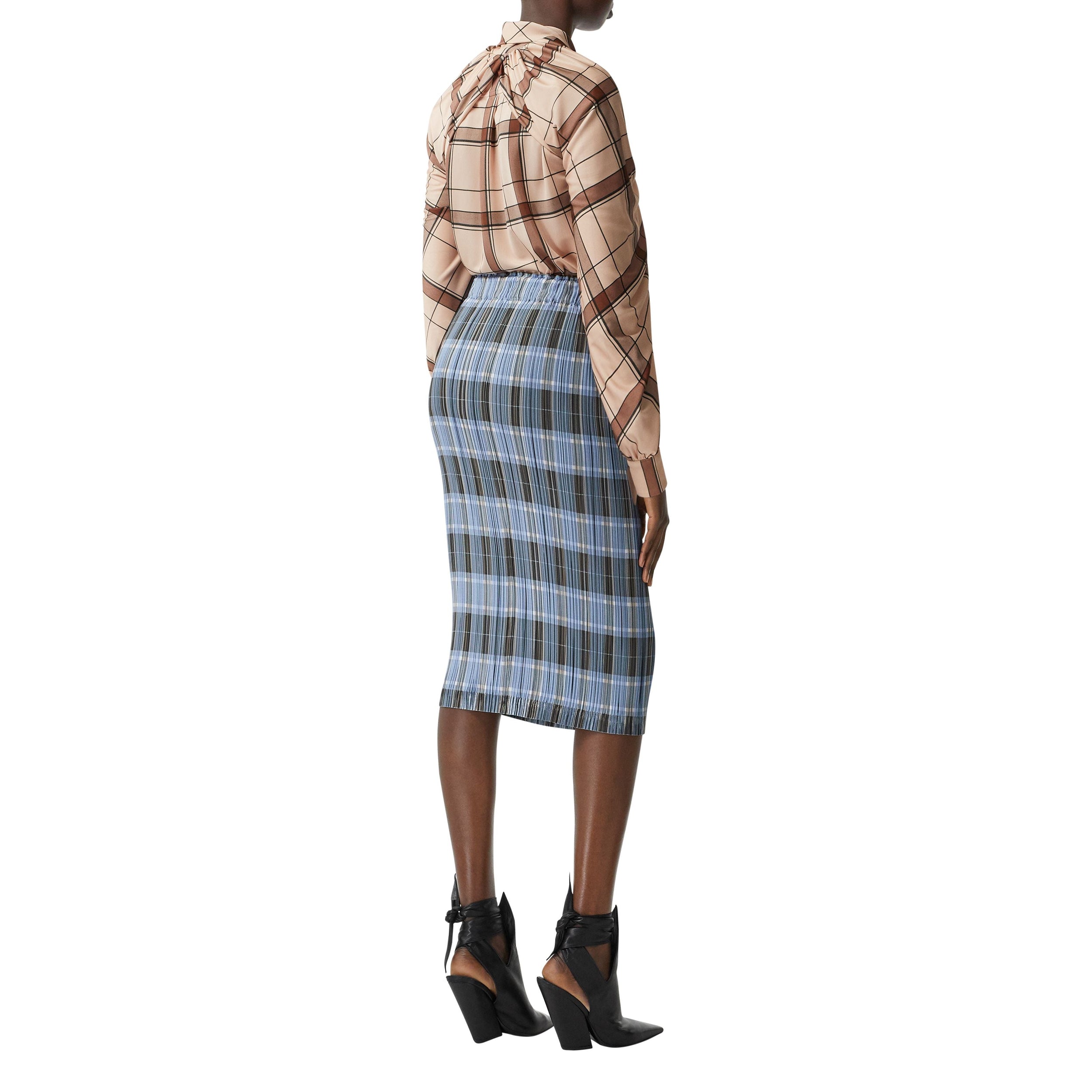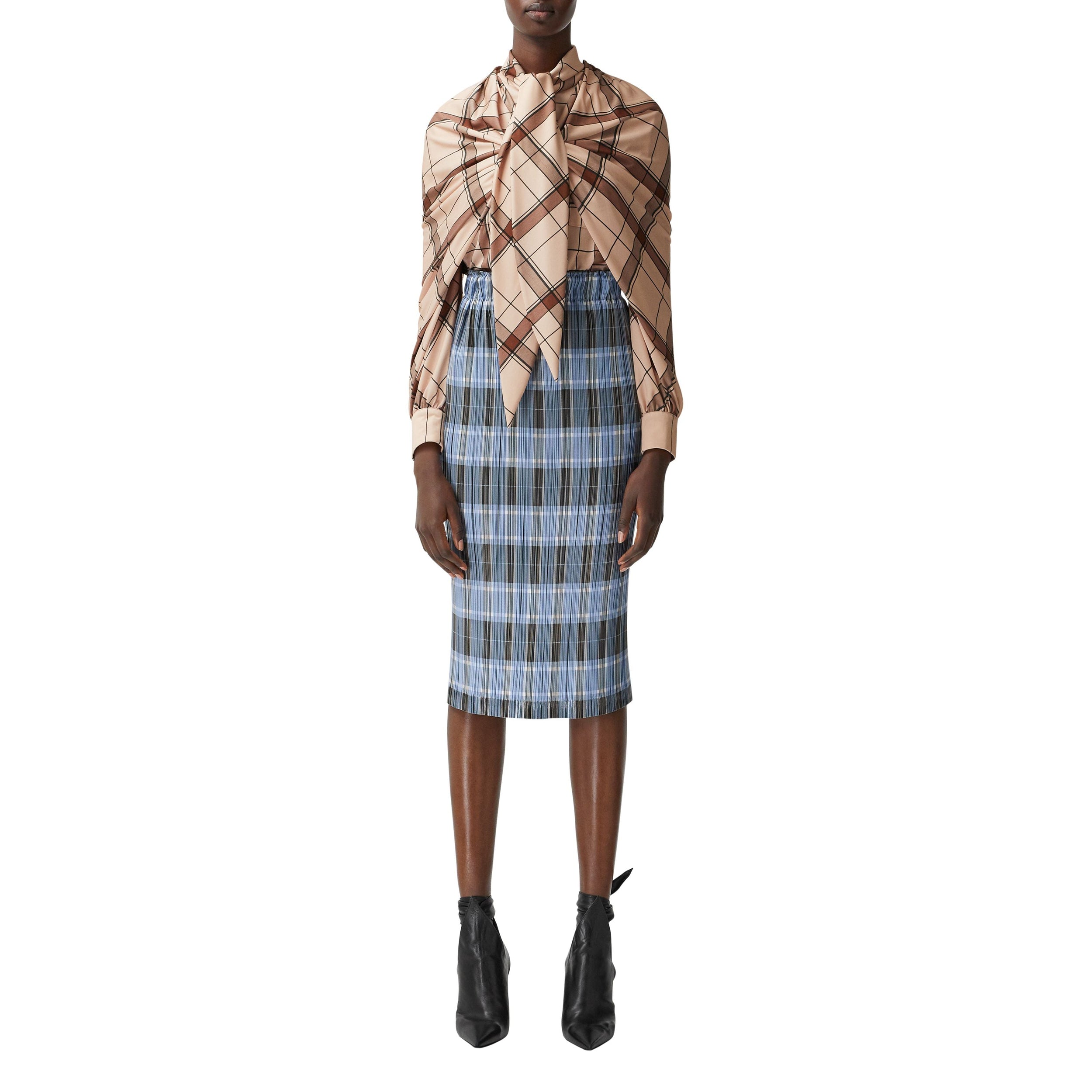Chemise à motif check agrémentée d'un drapé et d'un nœud volumineux.
