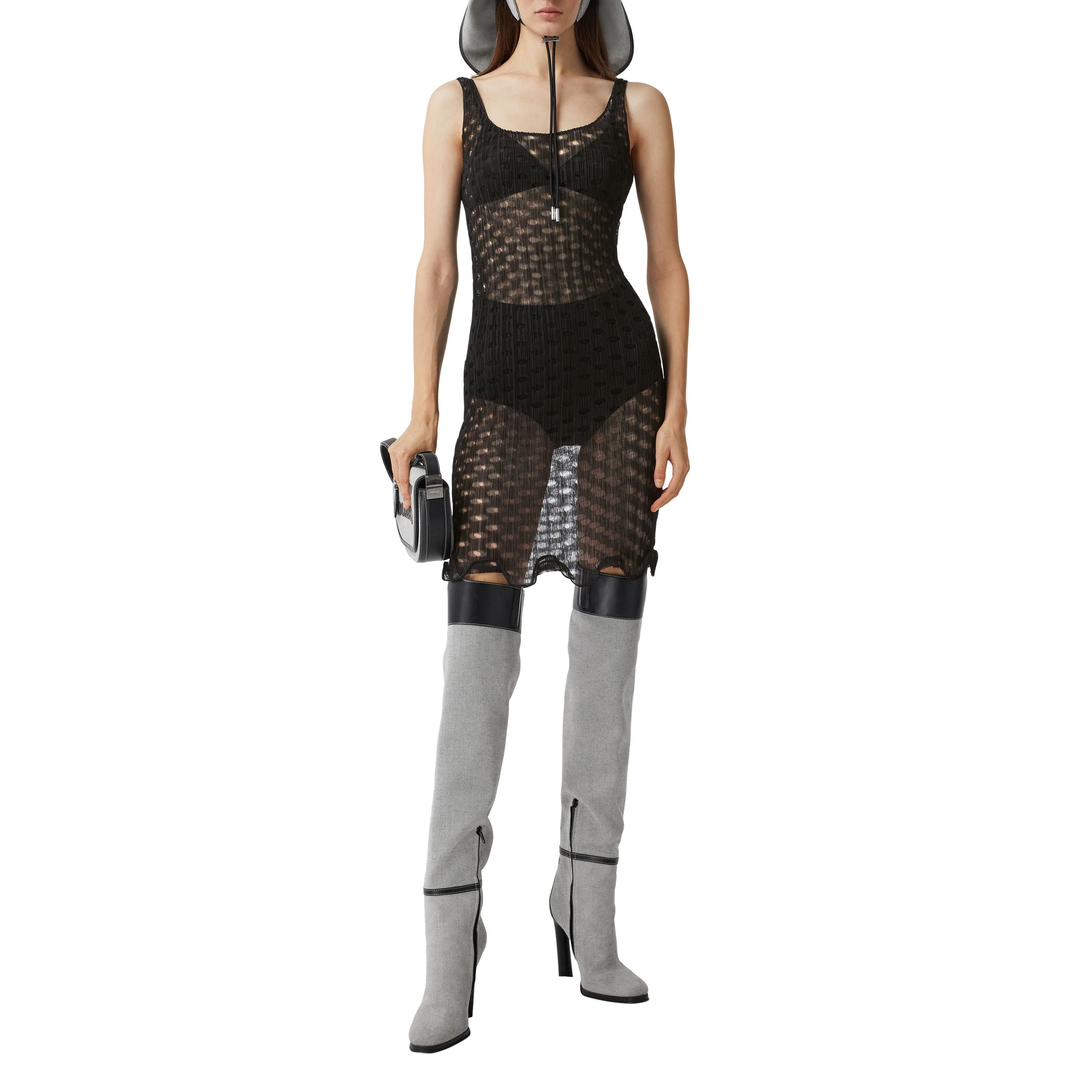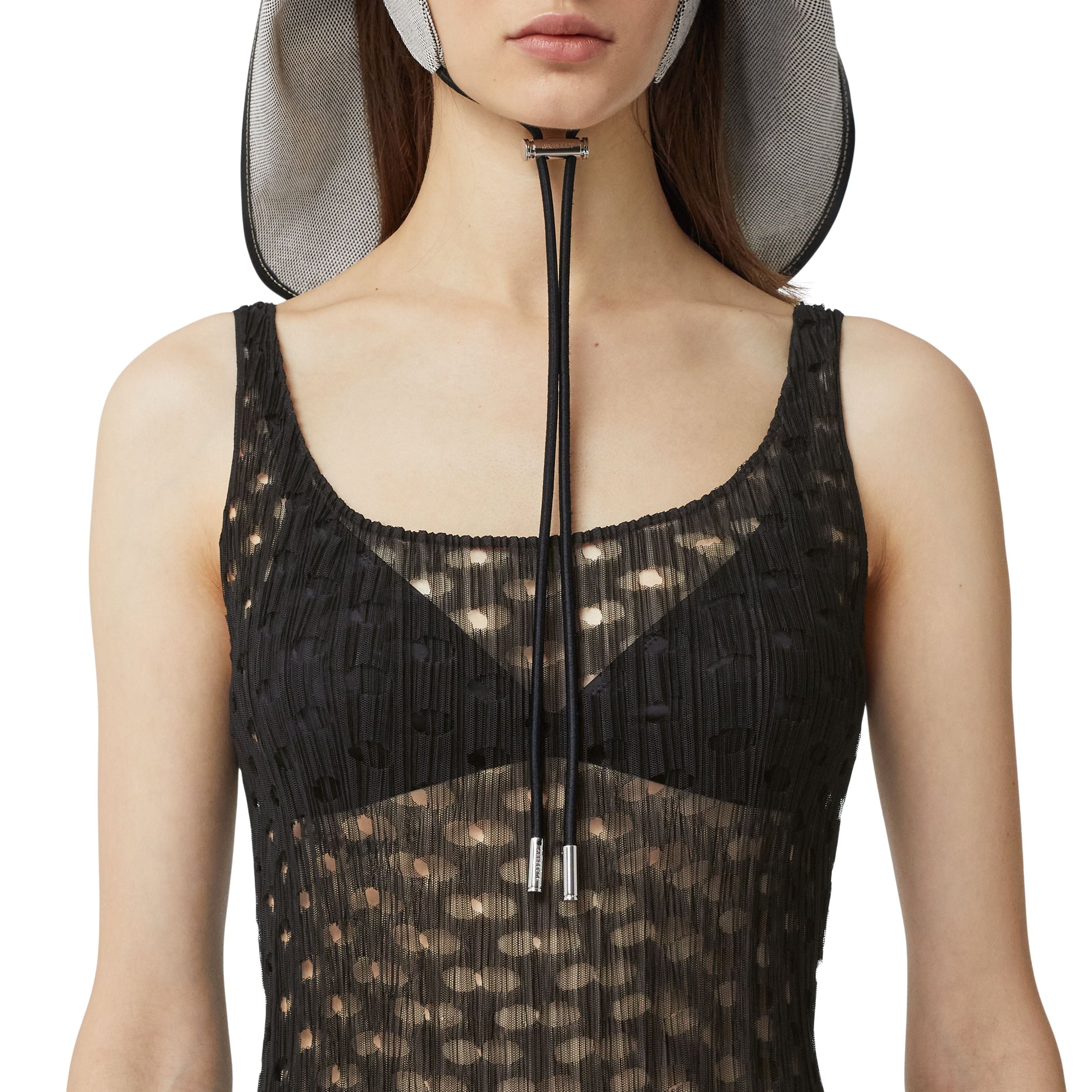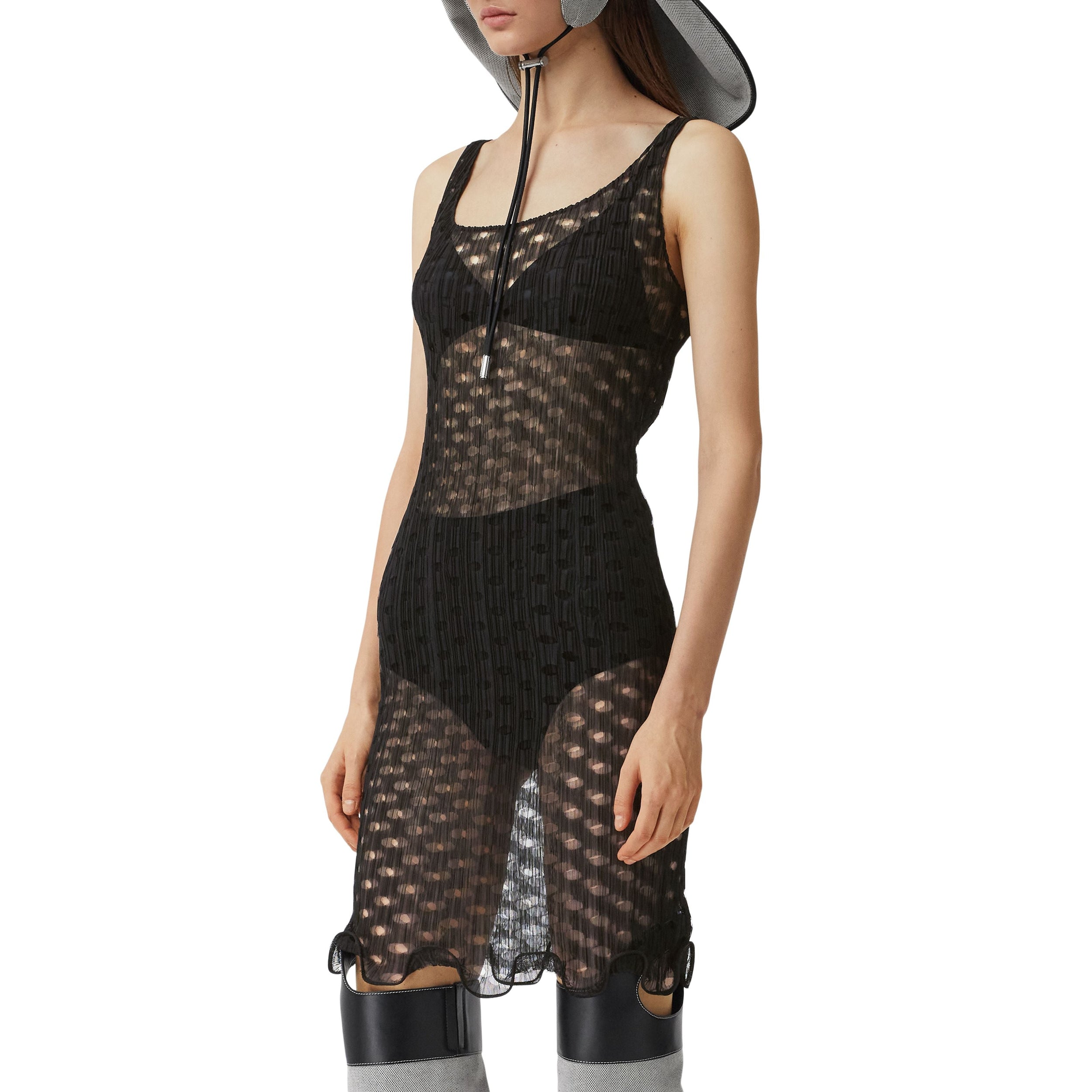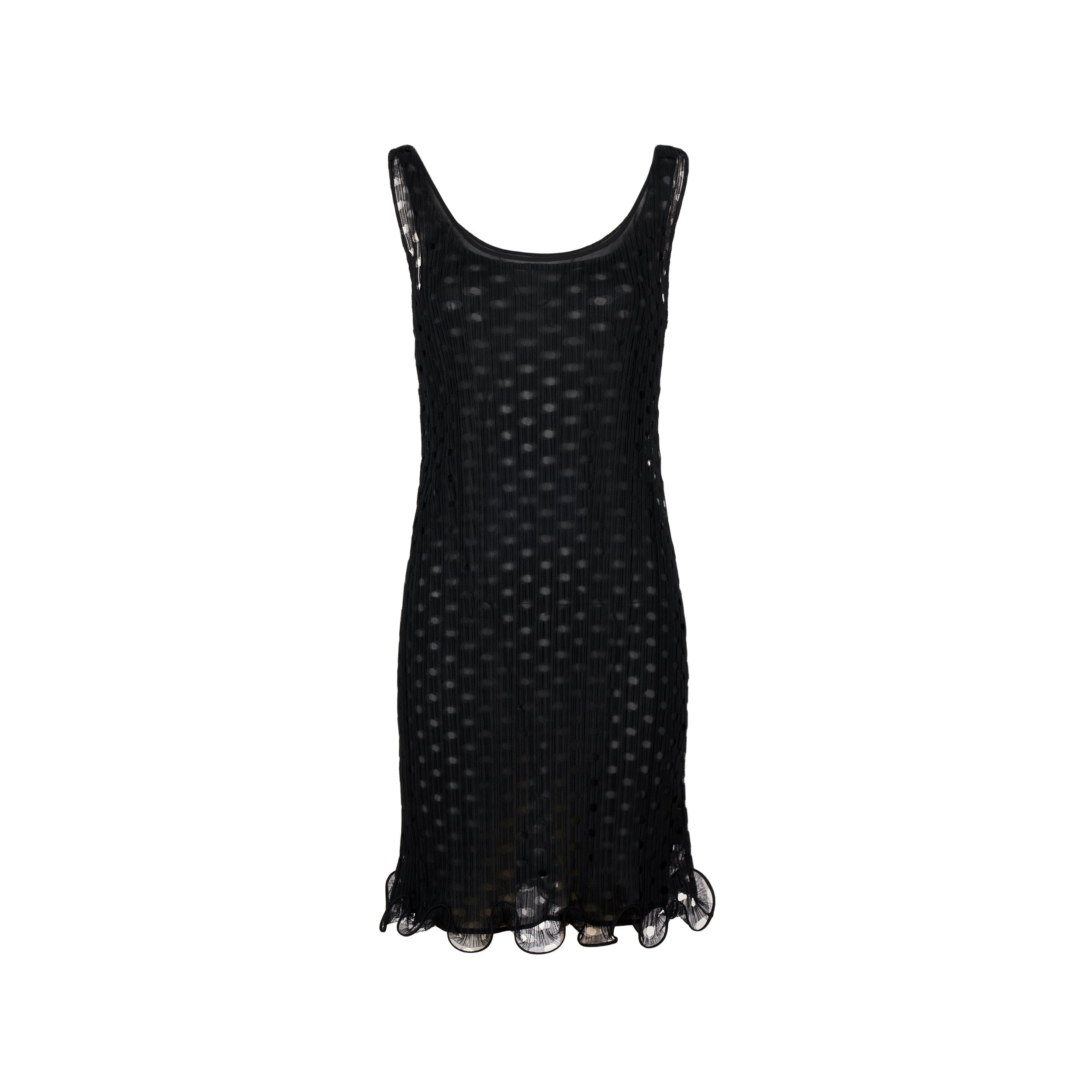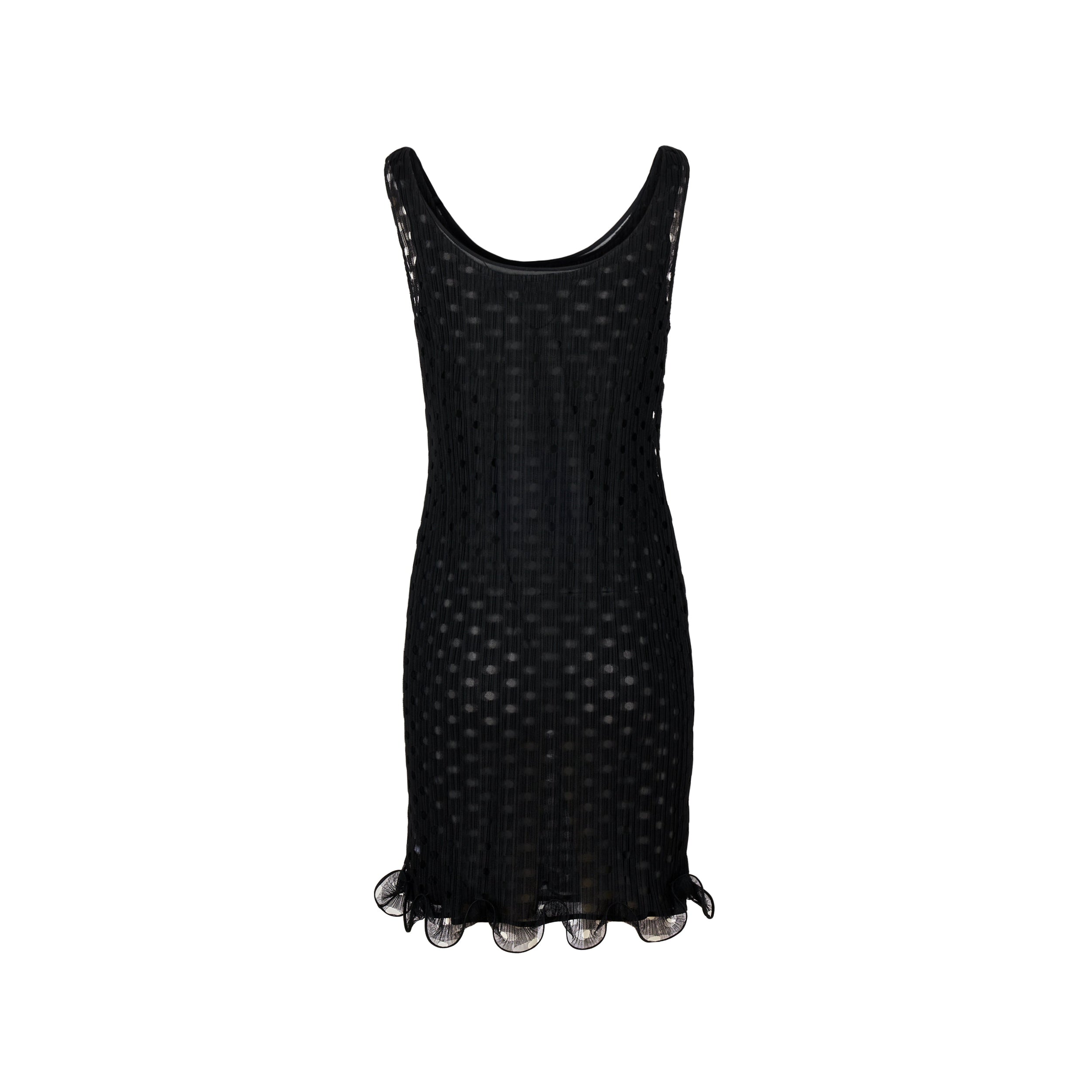 Une robe sans manches en tulle découpé au laser bordée de volants en crinoline.