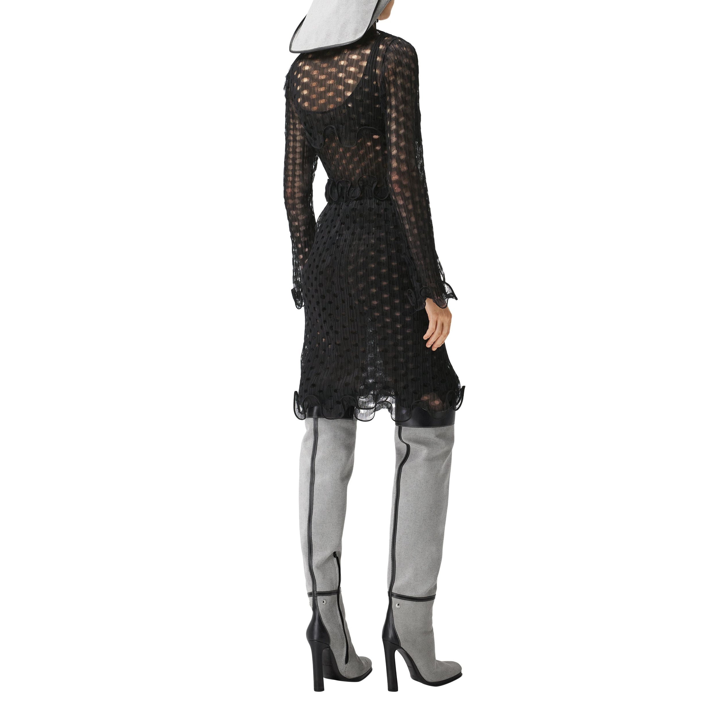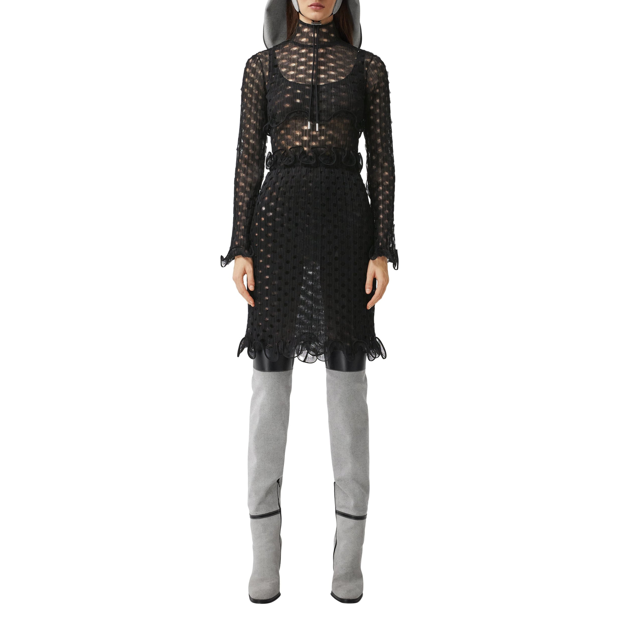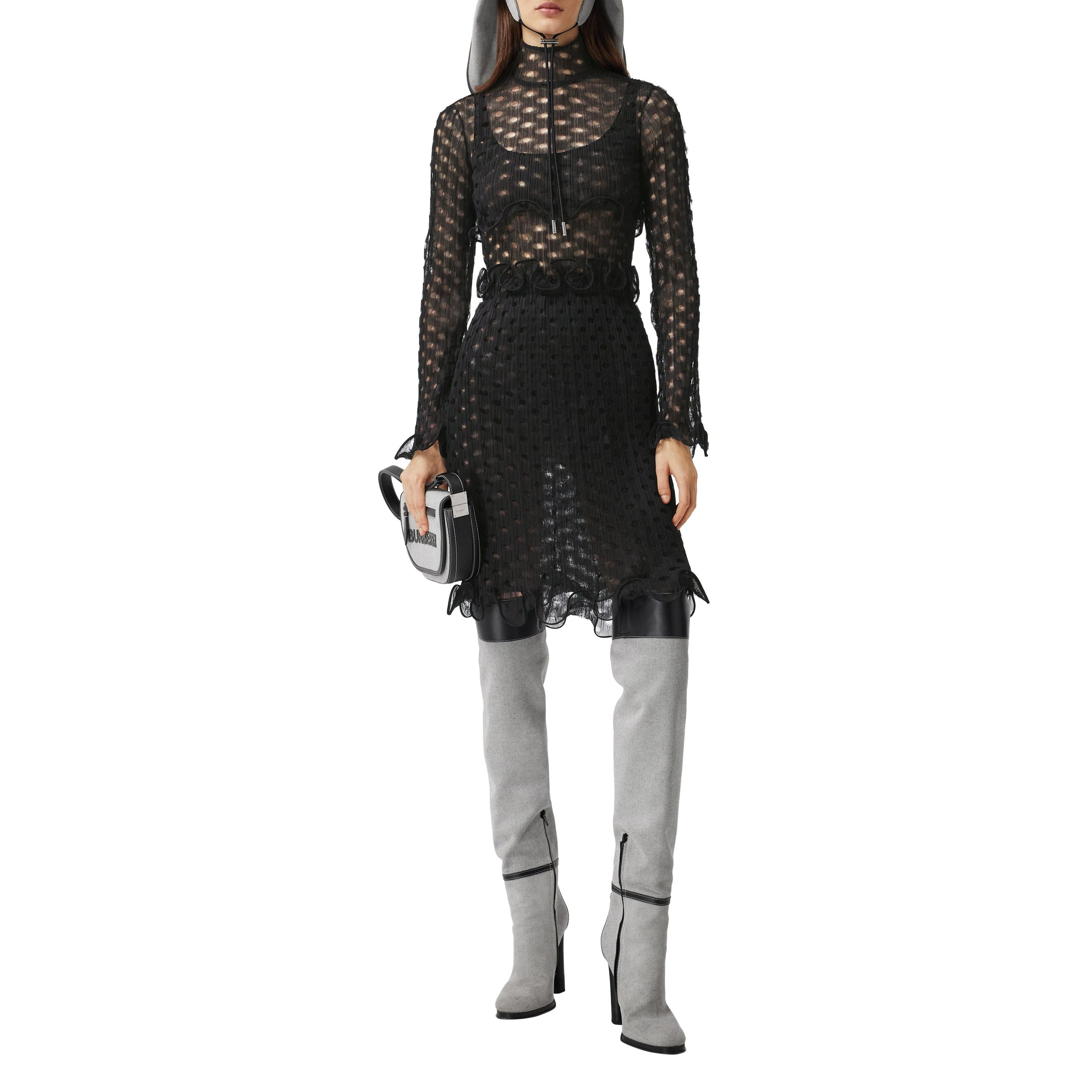 Cette jupe taille haute est confectionnée en tulle découpé au laser et agrémentée de volants de crinoline.