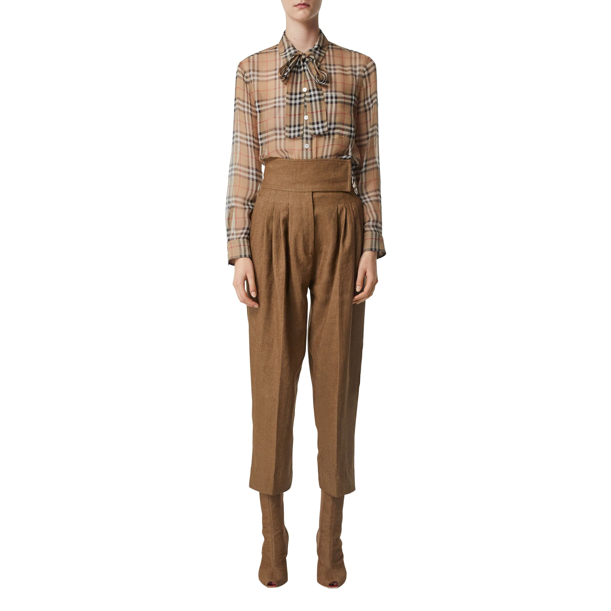 Cette chemise à col lavallière est confectionnée en mousseline de soie à motif Vintage check. L'étoffe fine et diaphane est imprimée en Italie grâce à des techniques de pointe.