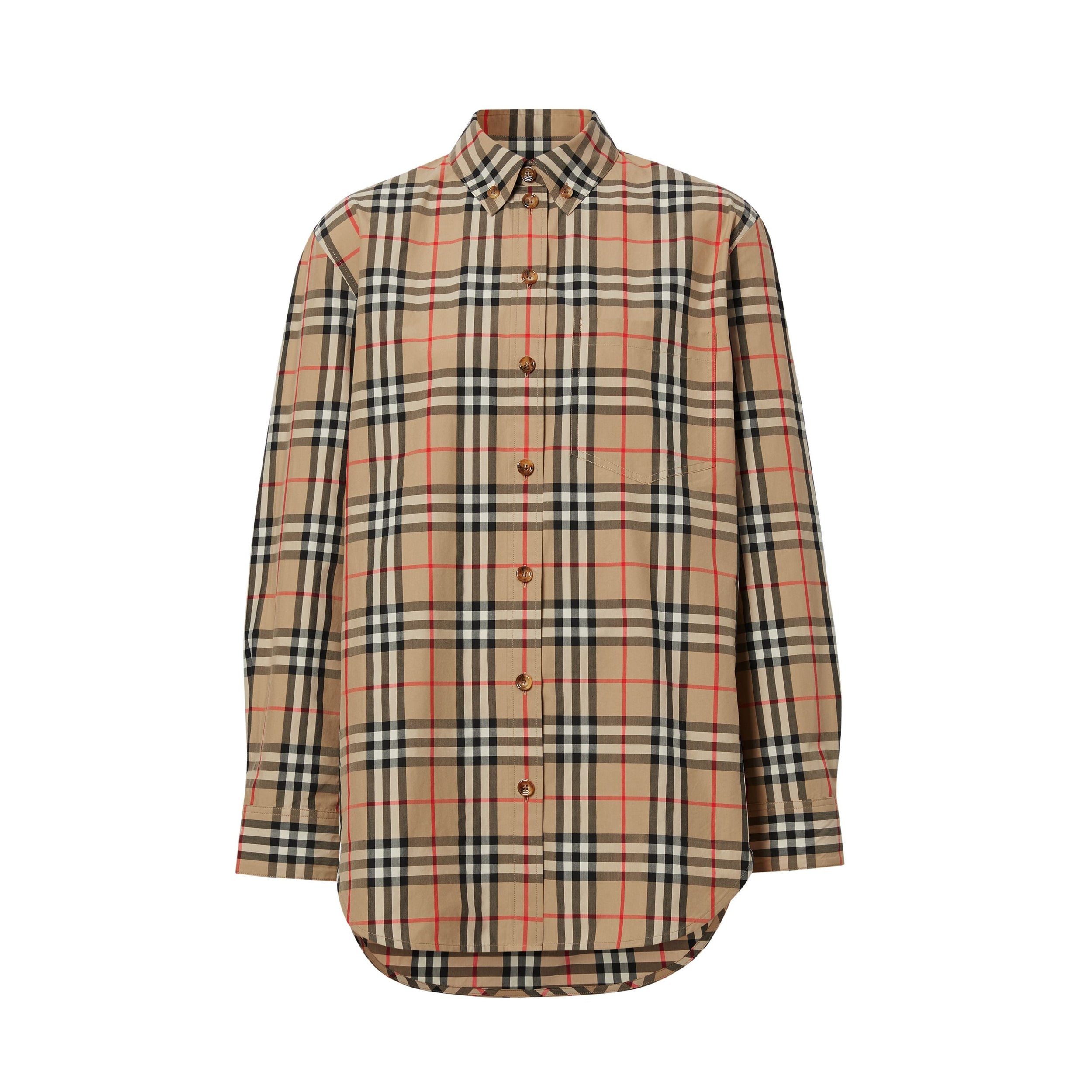 Chemise classique en popeline de coton tissée en Italie, animée de notre motif Vintage check.