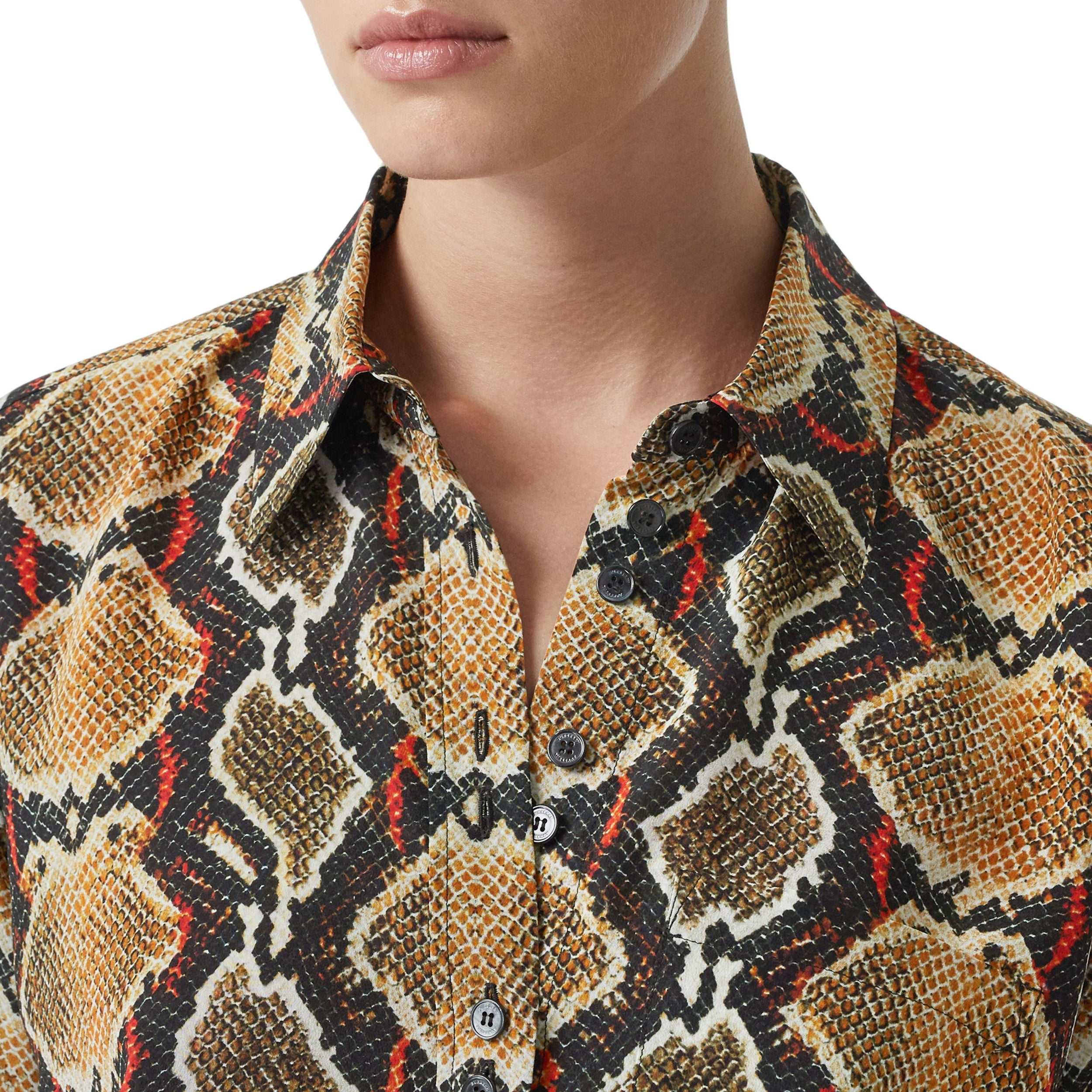Chemise en soie tissée en Italie sublimée de notre imprimé python, dotée d'une poche plaquée et de poignets reconstitués.
