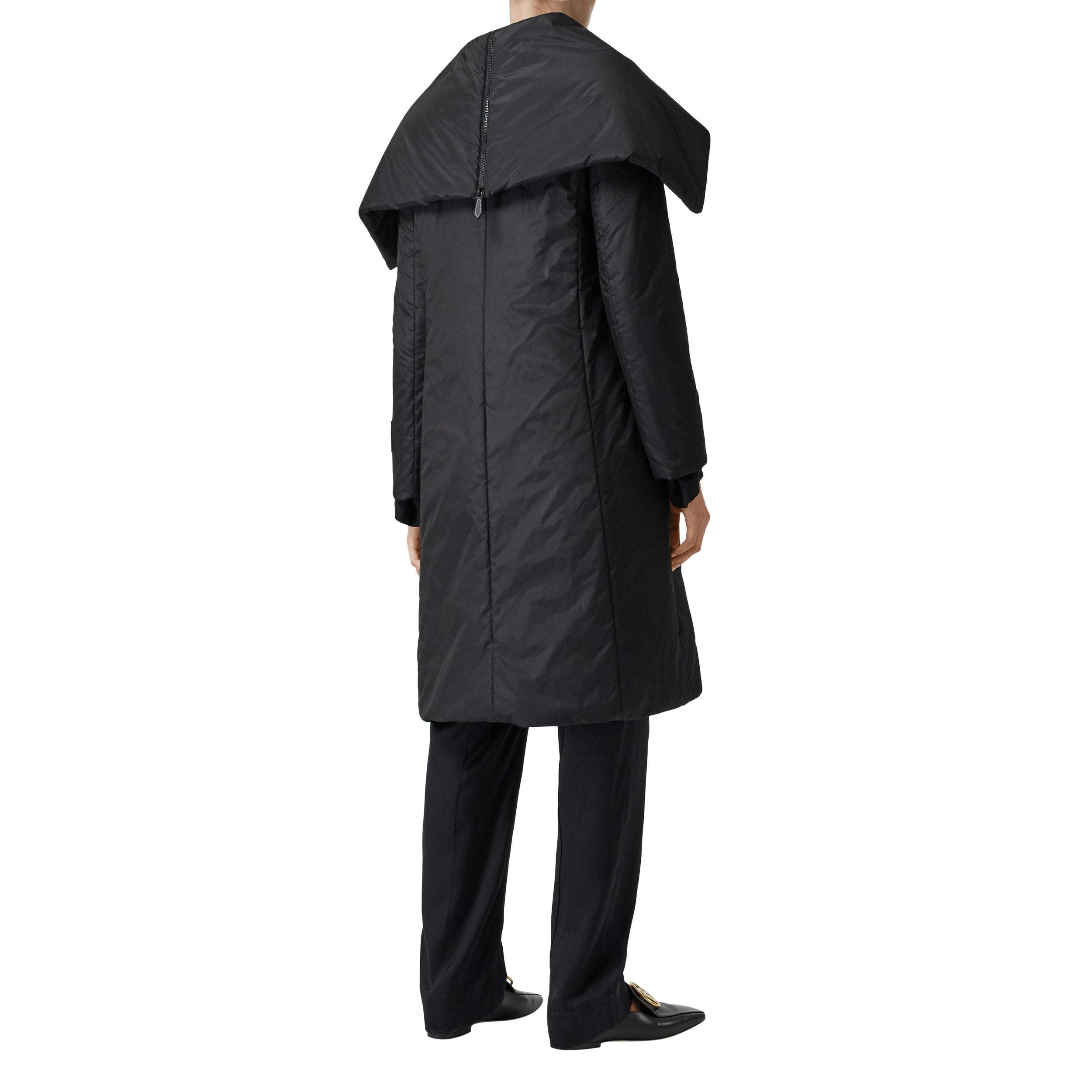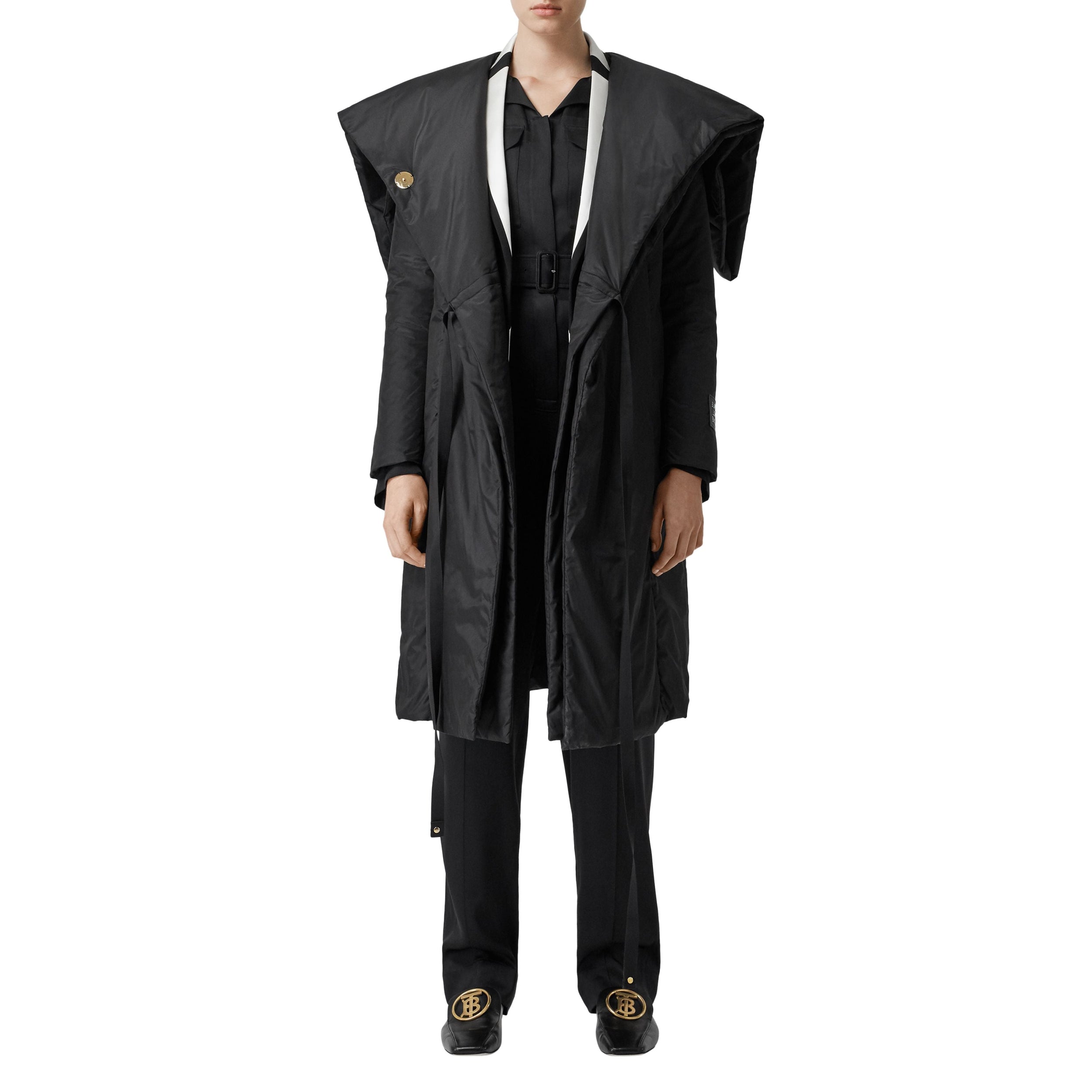 Ce manteau portefeuille matelassé confectionné en soie mélangée tissée en Italie arbore un détail zippé façon cape ainsi qu'un appliqué à logo sur la manche.