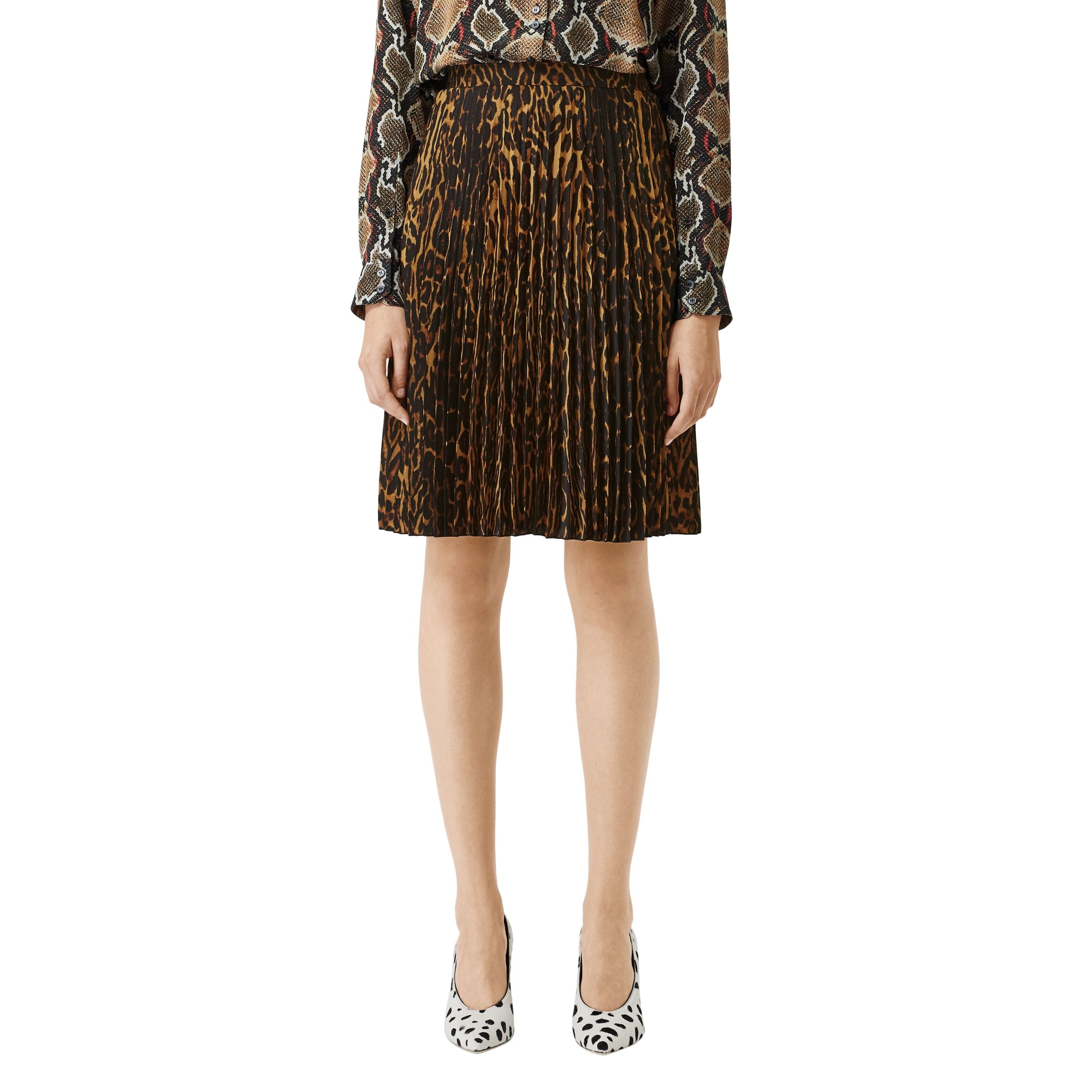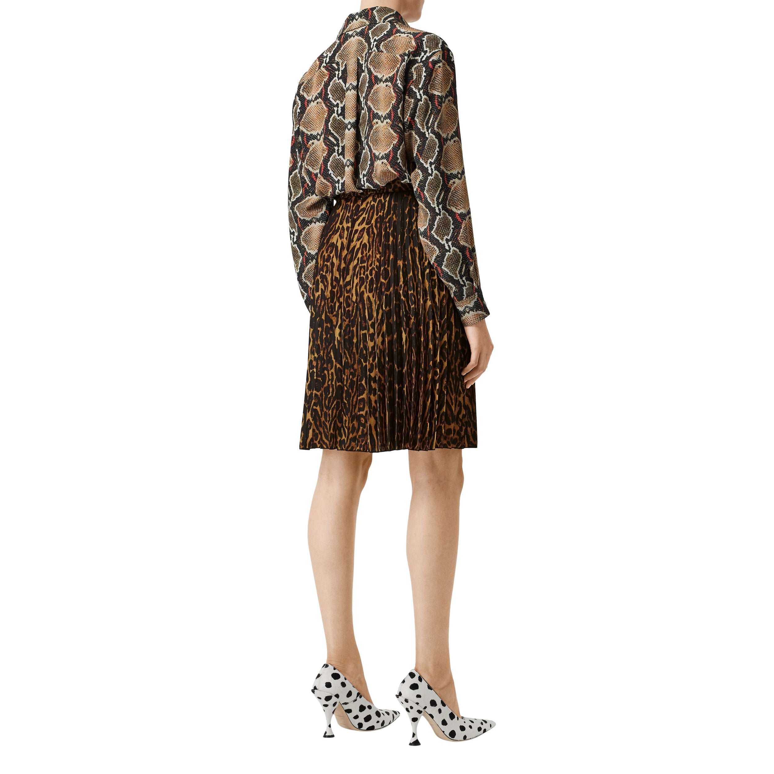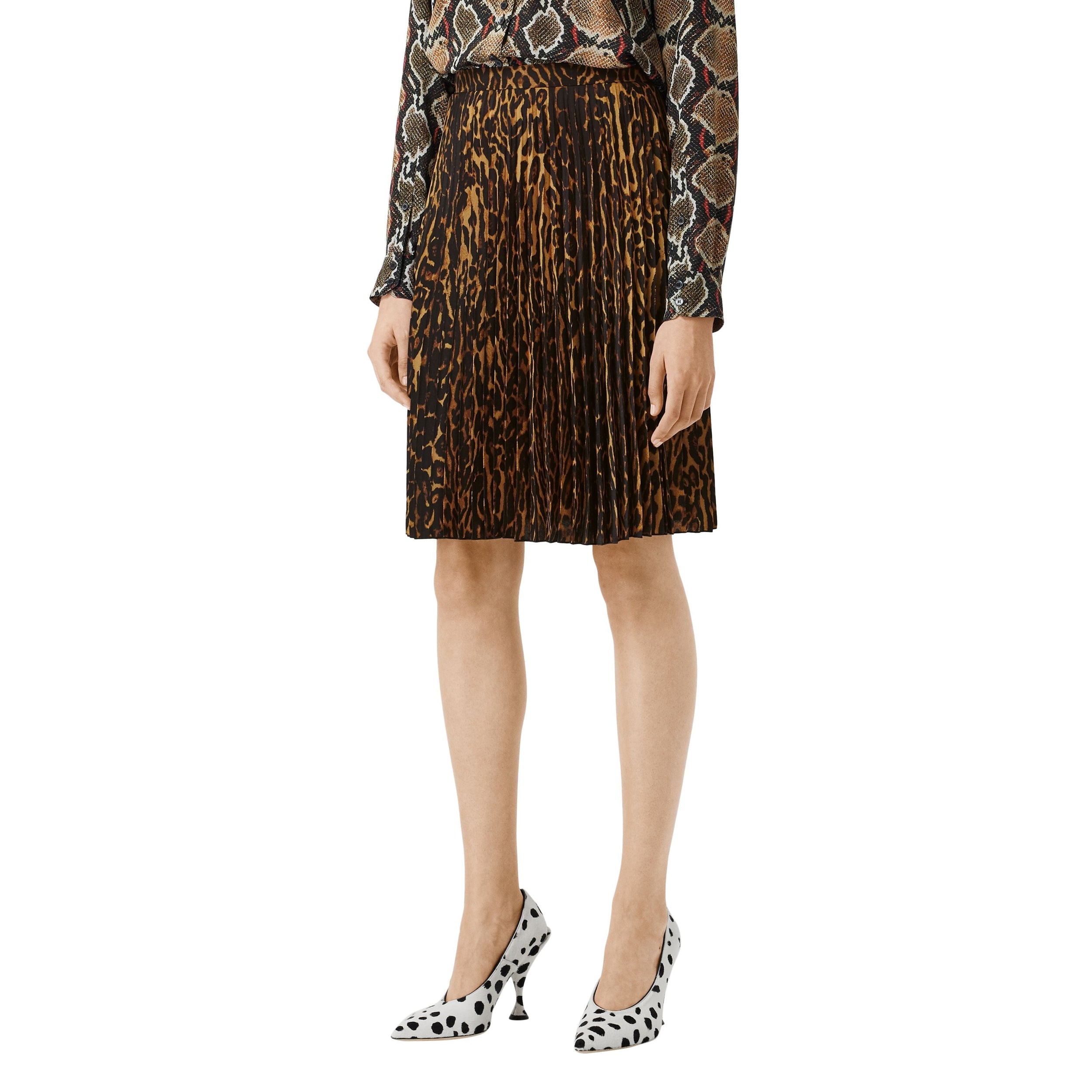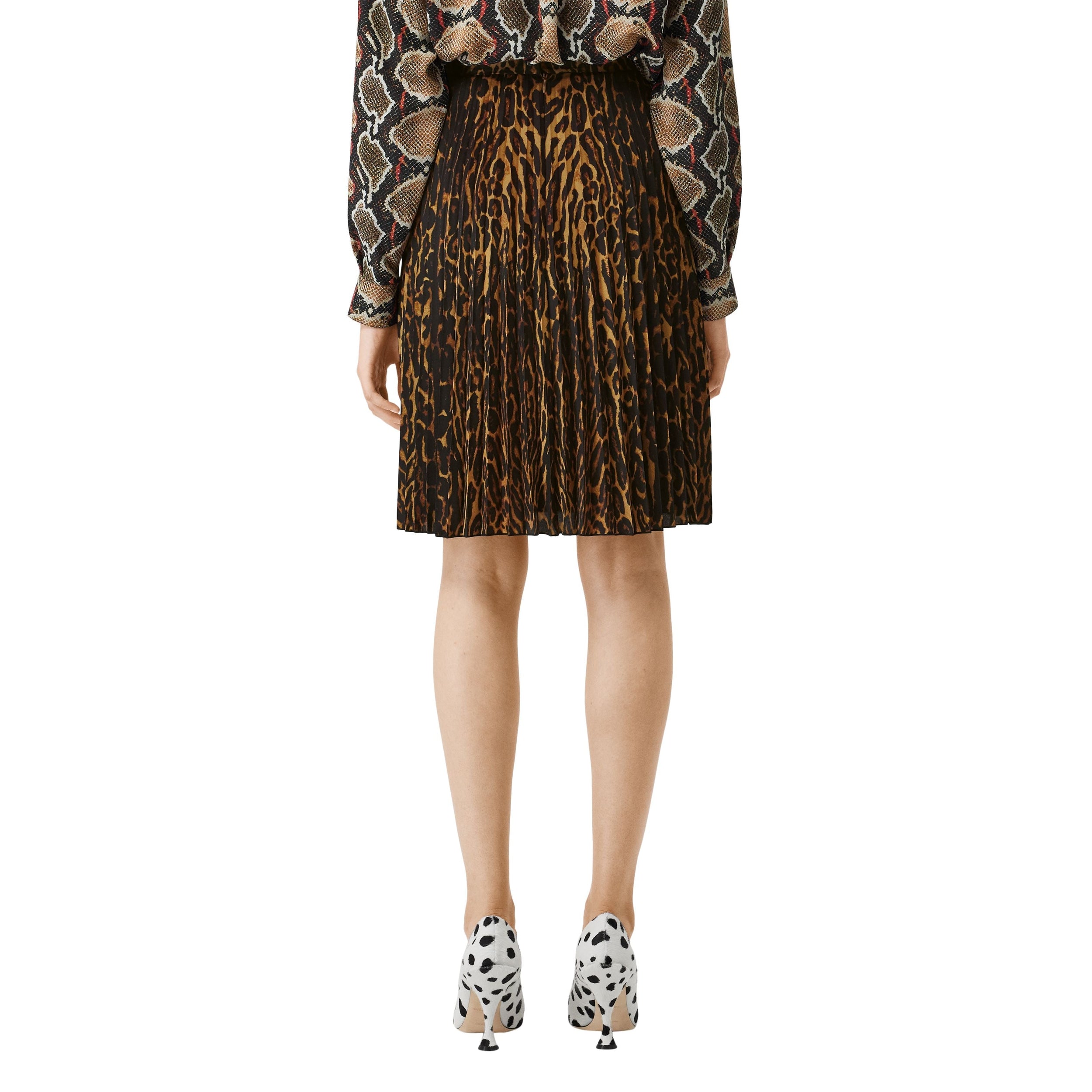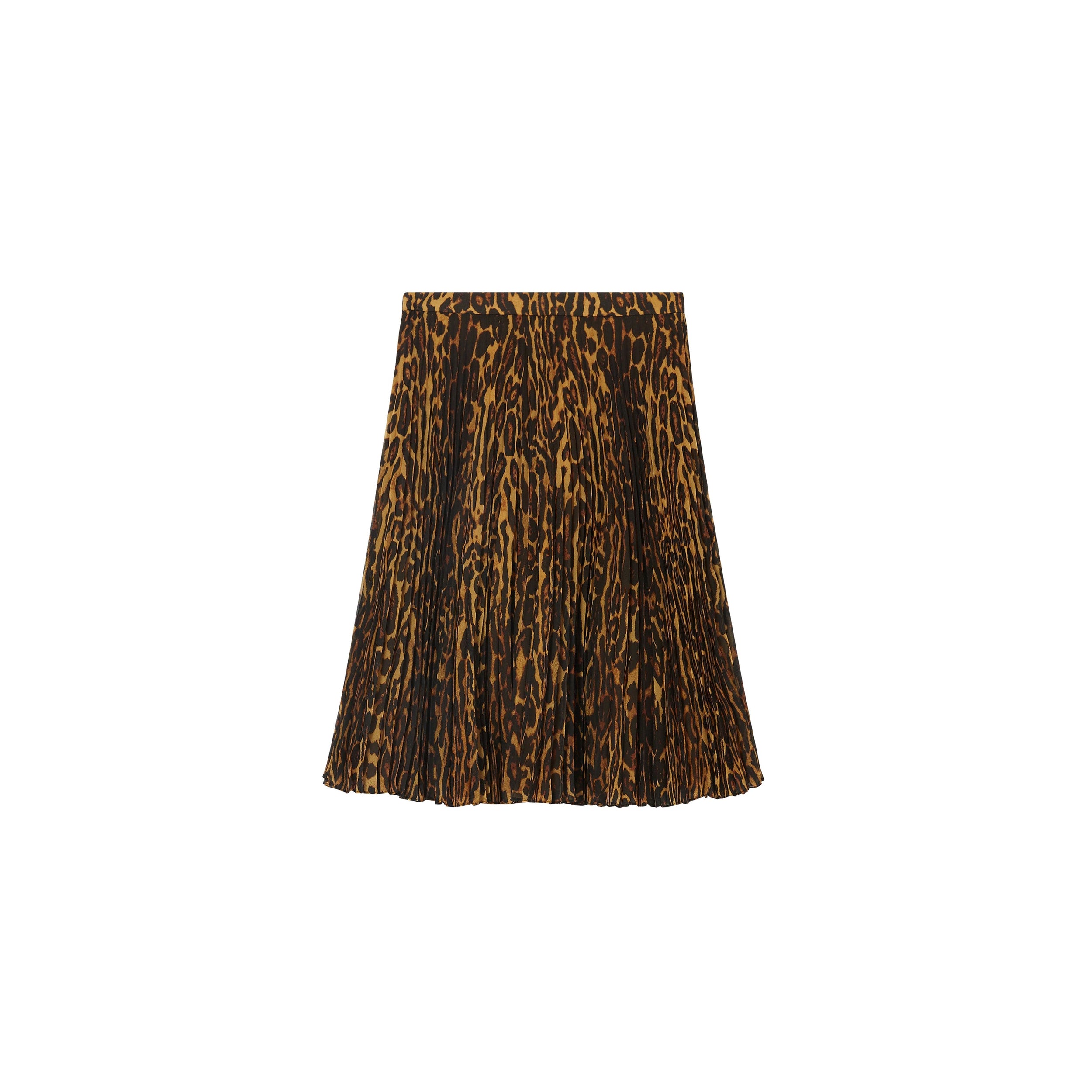 Jupe plissée fluide ornée d'un imprimé léopard et doublée de soie tissée en Italie.