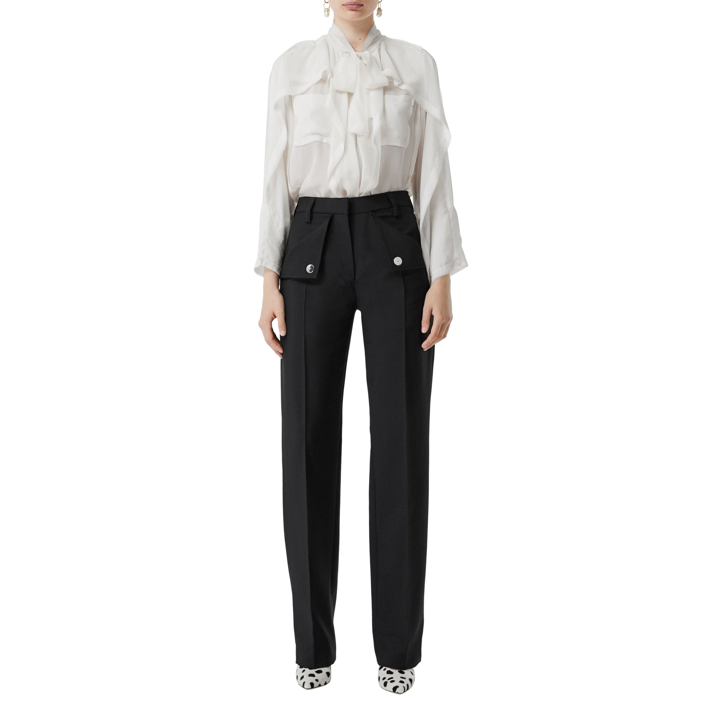 Pantalon arborant une silhouette droite, confectionné en laine et mohair tissés dans le Yorkshire et doté de poches à rabat inspirées des uniformes marins.