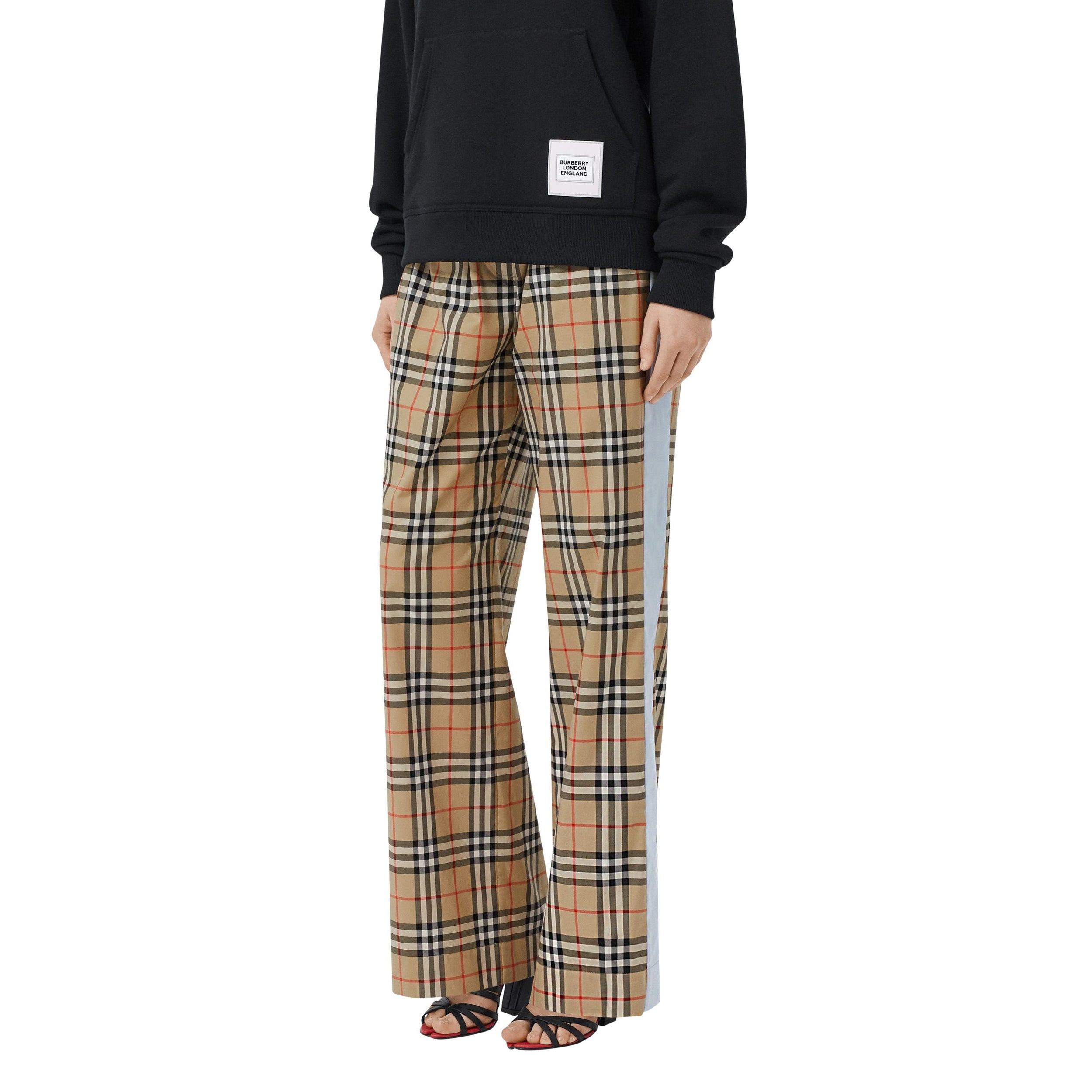 Pantalon ample en coton stretch à motif Vintage check, agrémenté de bandes latérales de couleur différente.