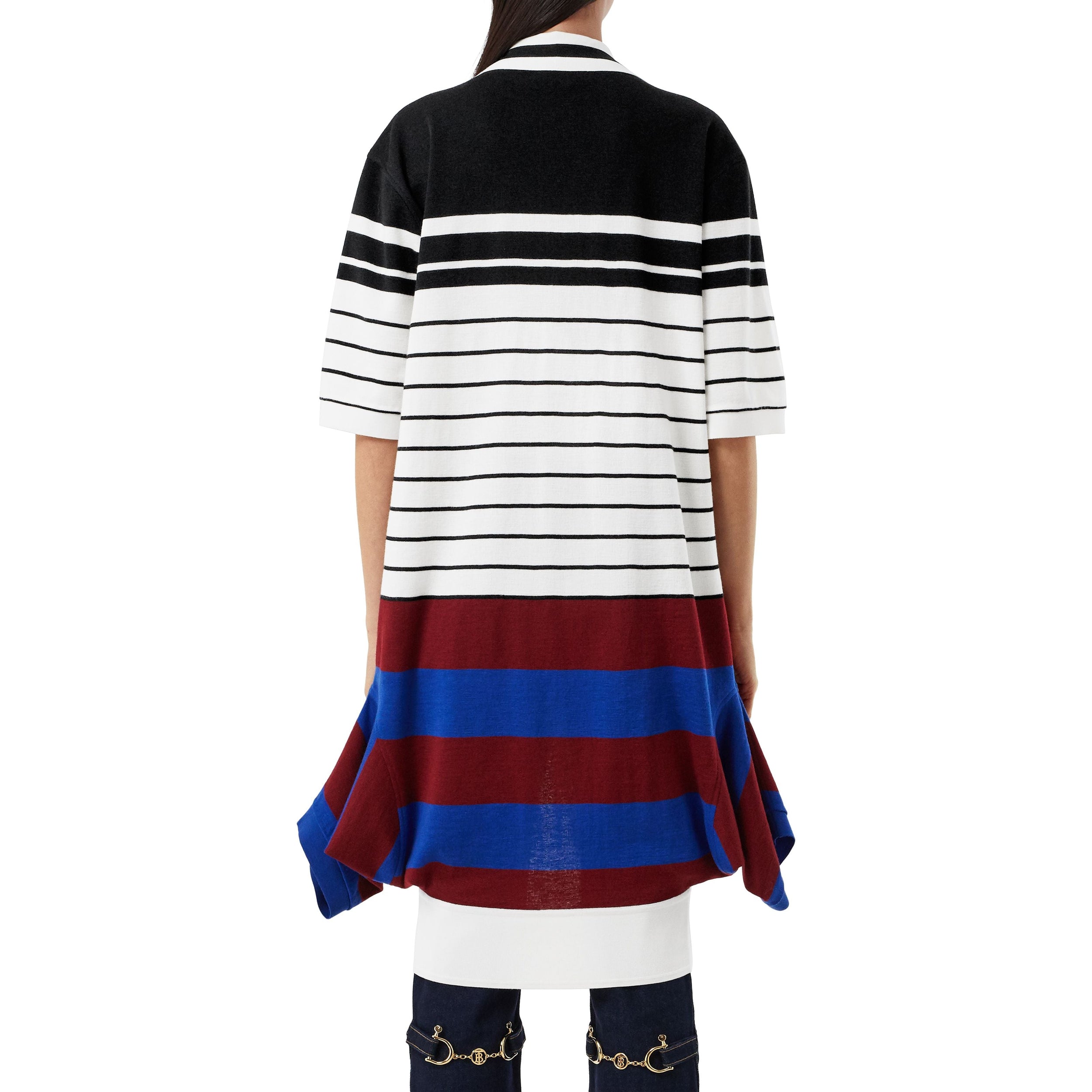 Robe polo déstructurée en laine mérinos rayée