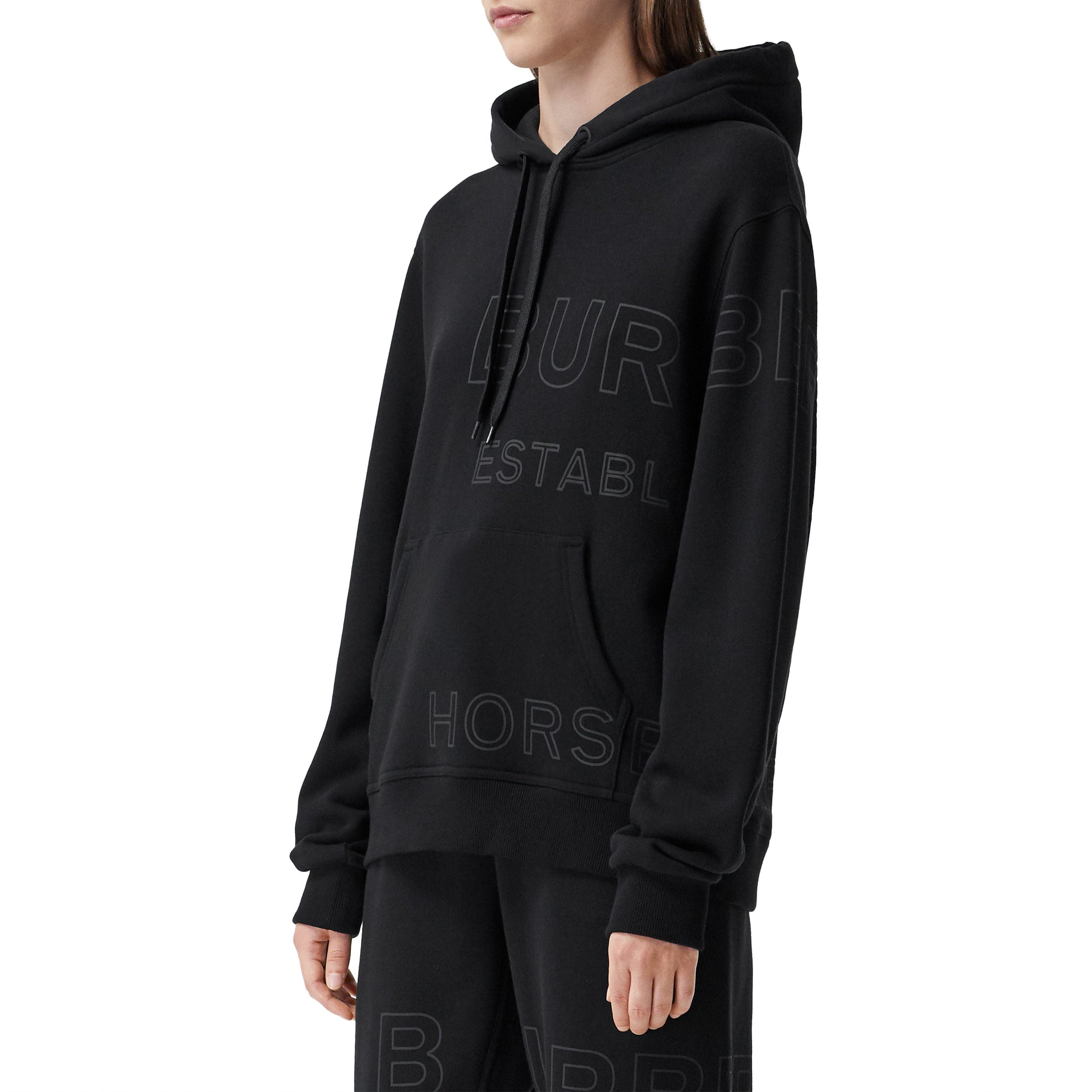 Ce hoodie oversize confectionné en coton est revisité des contours du logo Horseferry.