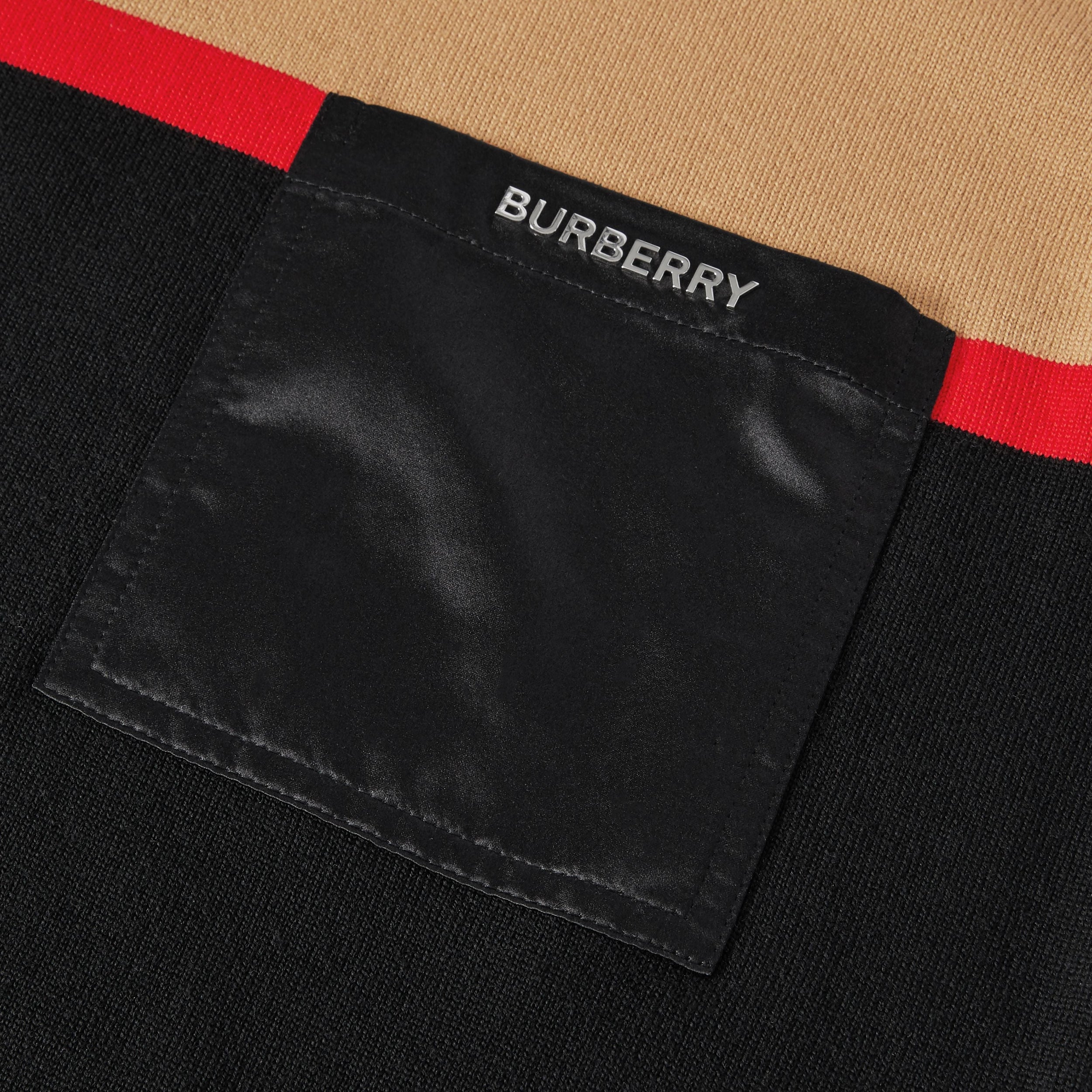 Ce pull casual color-block confectionné en coton et laine évoque les rayures iconiques de la Maison Burberry. La pièce est ornée de notre logo sur la poche poitrine.