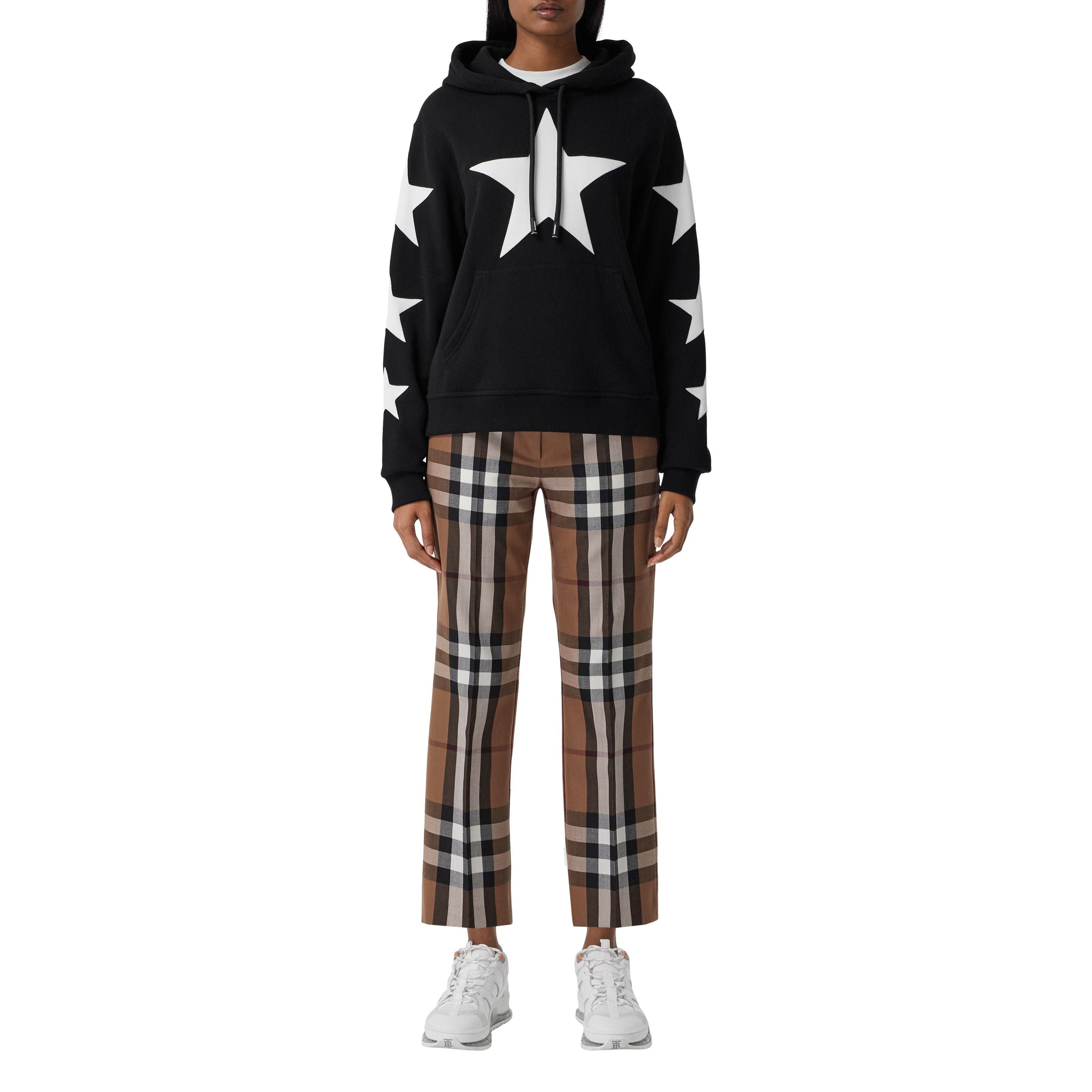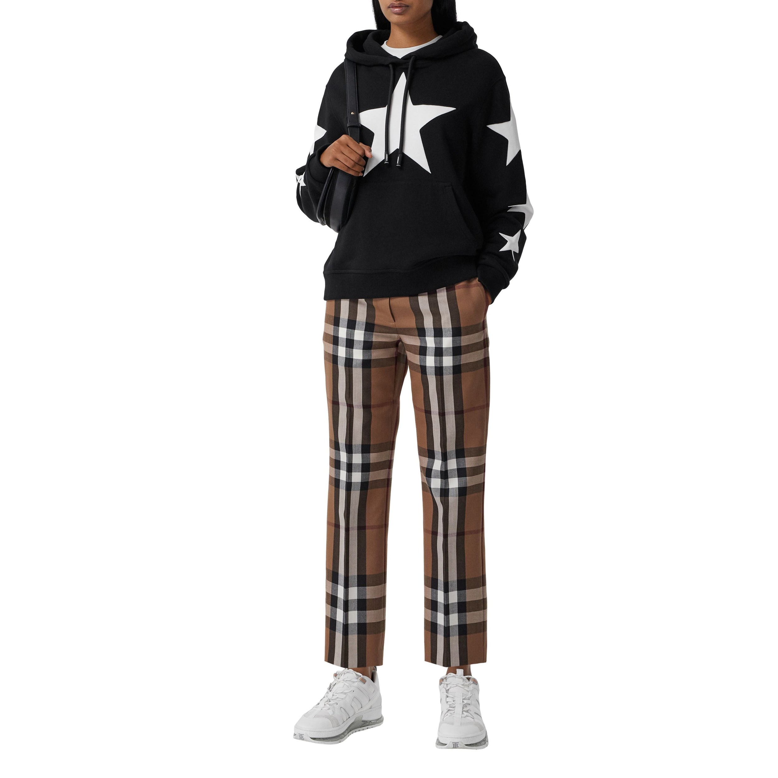 Pantalon droit 7/8 confectionné en laine à motif check.