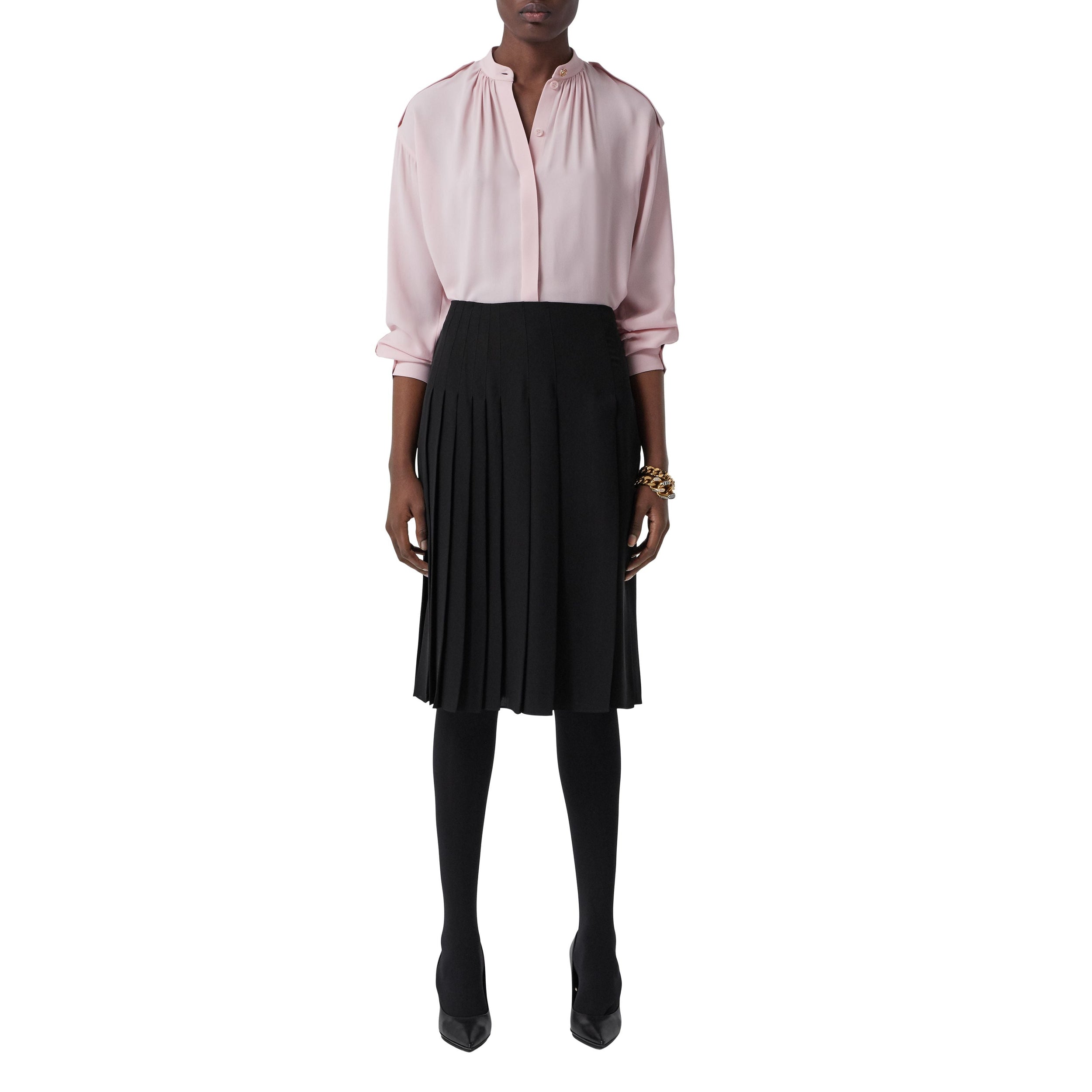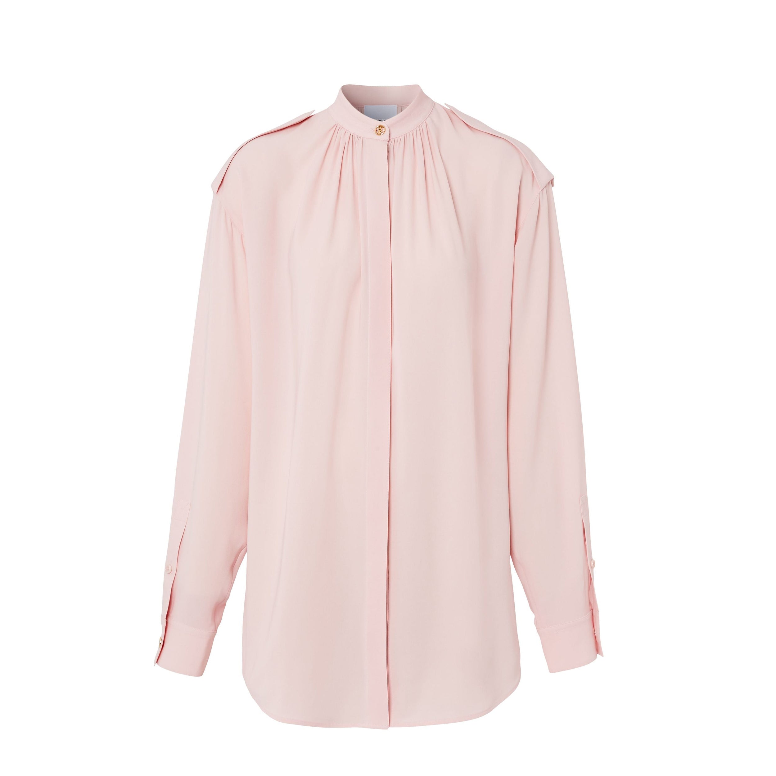 Cette chemise fluide en crêpe de soie de Chine tissée en Italie est agrémentée d'un col officier et de pattes d'épaules inspirées de notre trench-coat emblématique. La pièce fait partie de notre collection capsule Future Heritage consacrée à la modernité de nos essentiels élégants.