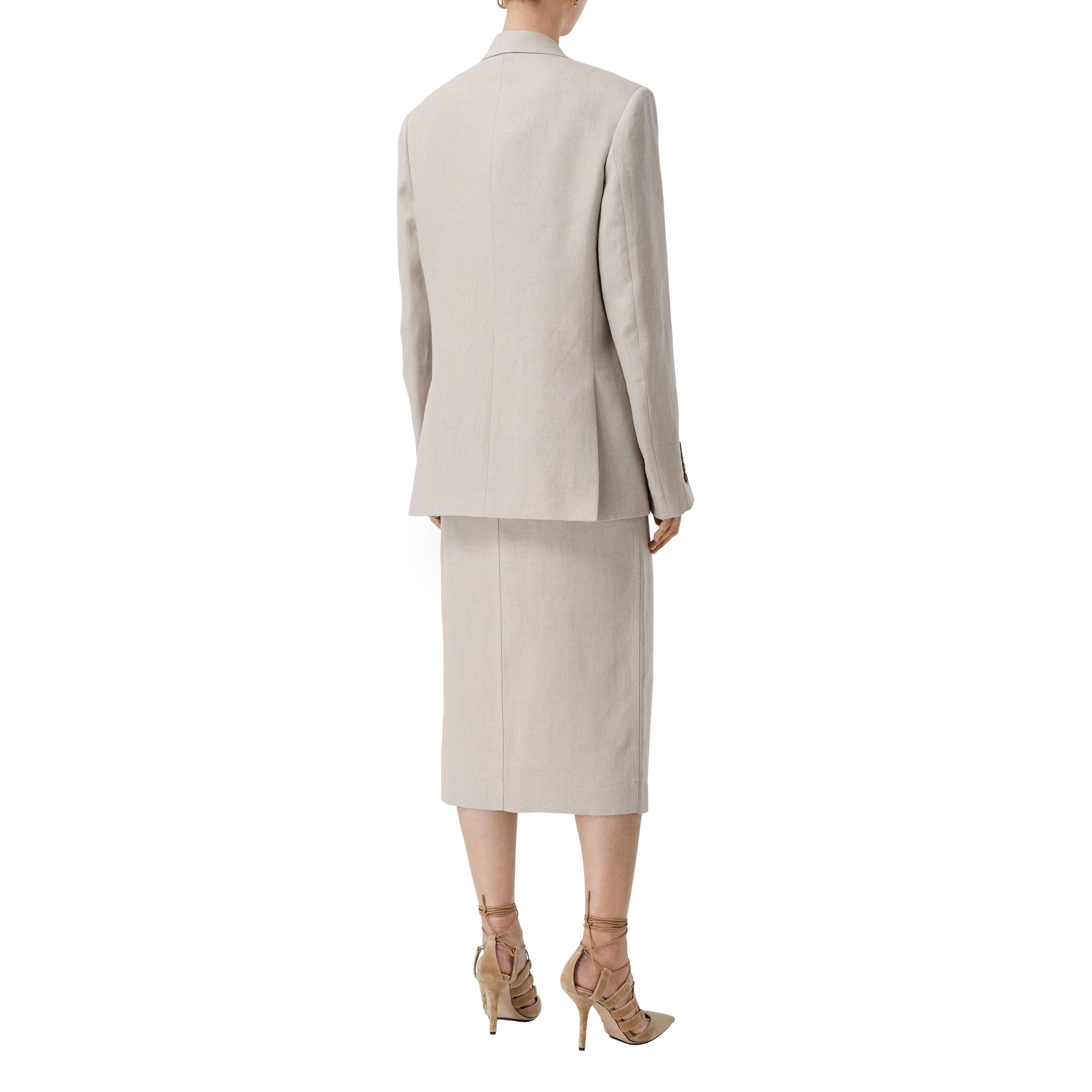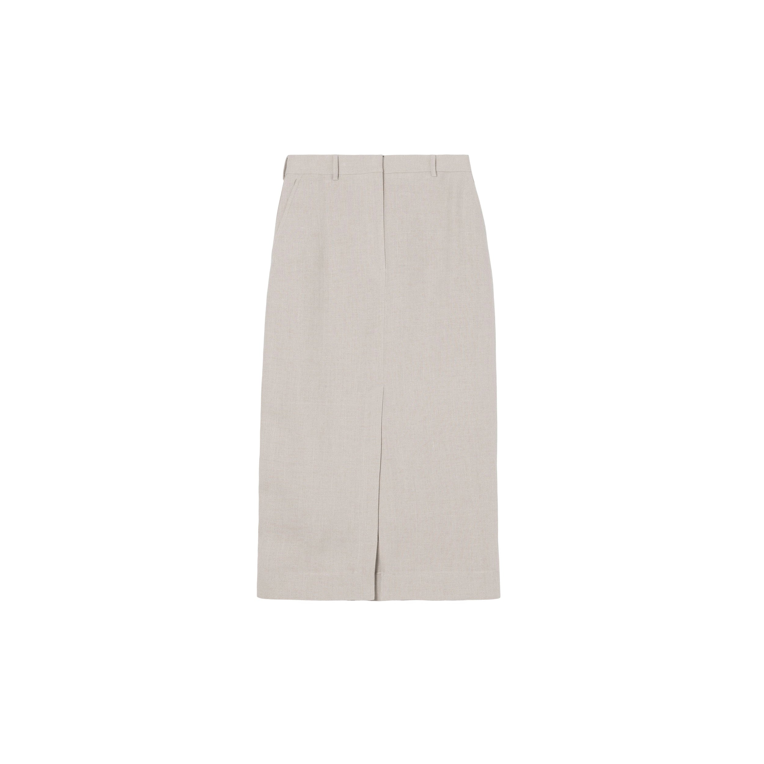 Cette jupe crayon est tissée en lin léger. Conçue pour les petites tailles, la pièce est agrémentée d'une fente avant pour une plus grande amplitude de mouvement.