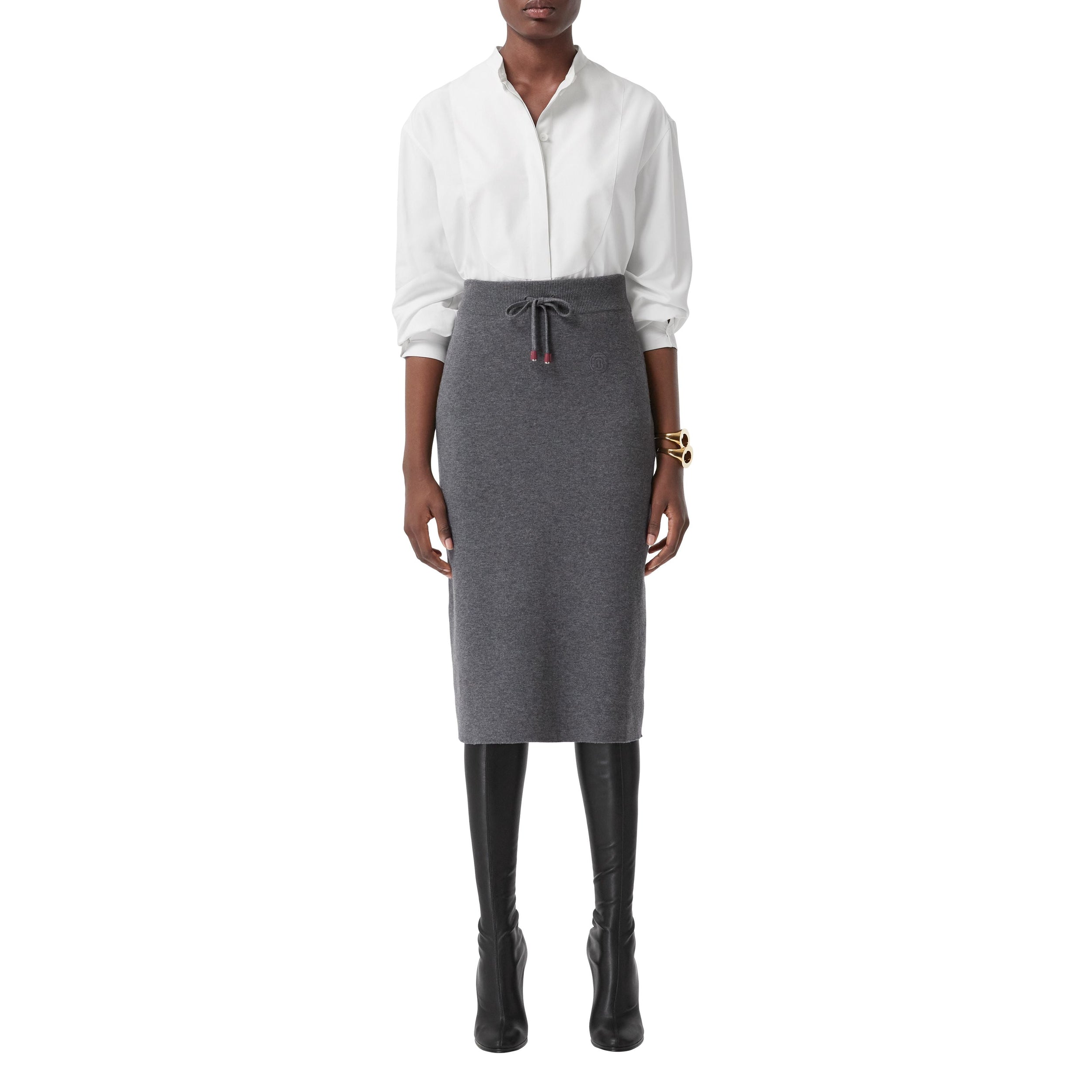 Conçue pour les petites tailles, cette jupe crayon mi-longue confectionnée dans un mélange de cachemire double face et de coton est brodée d'un monogramme Thomas Burberry ton sur ton. La pièce fait partie de notre collection capsule Future Heritage, consacrée à la modernité de nos essentiels élégants.