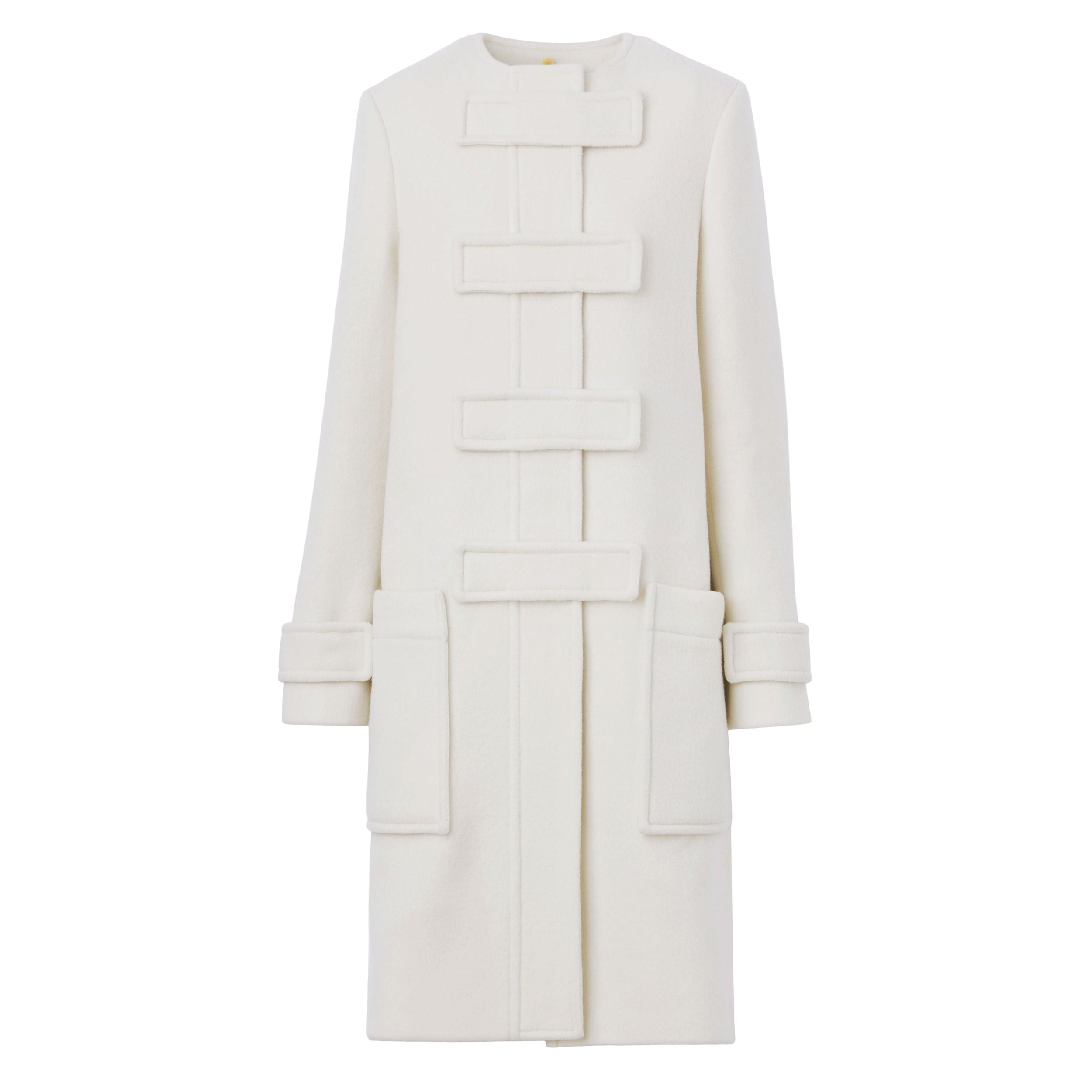 Duffle-coat confectionné en Italie en laine technique et doté de poches plaquées.