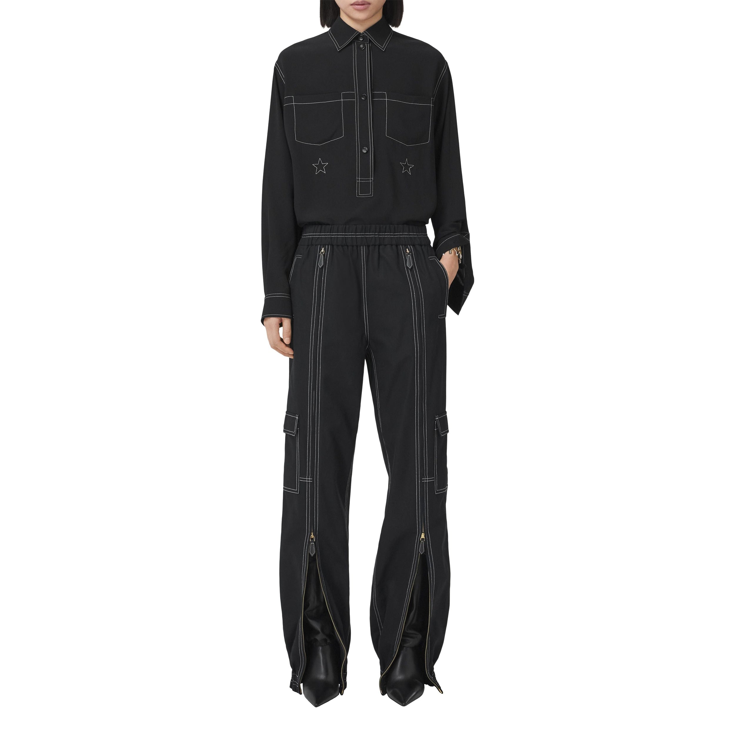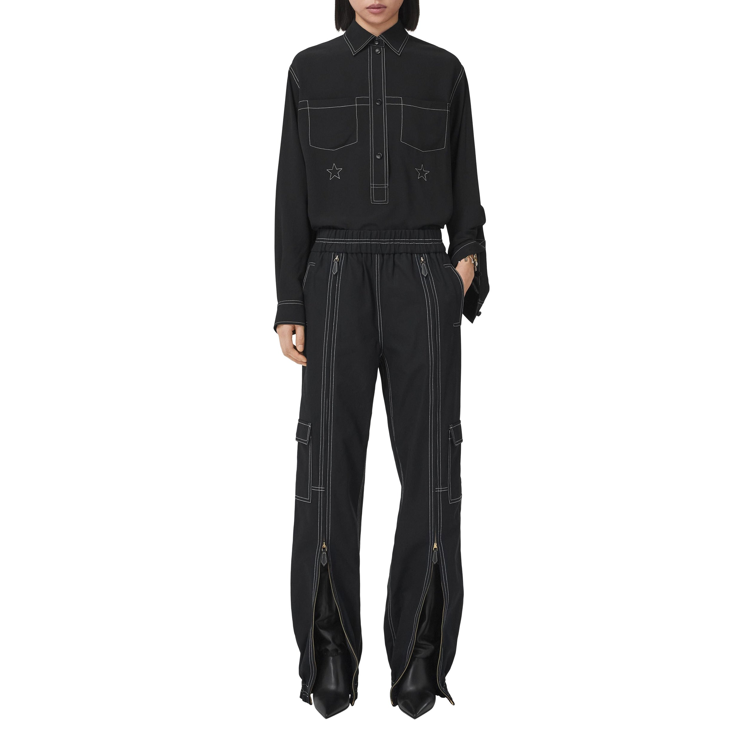Ce pantalon cargo composé de coton biologique est sublimé de détails zippés et de surpiqûres pour une touche de contraste.