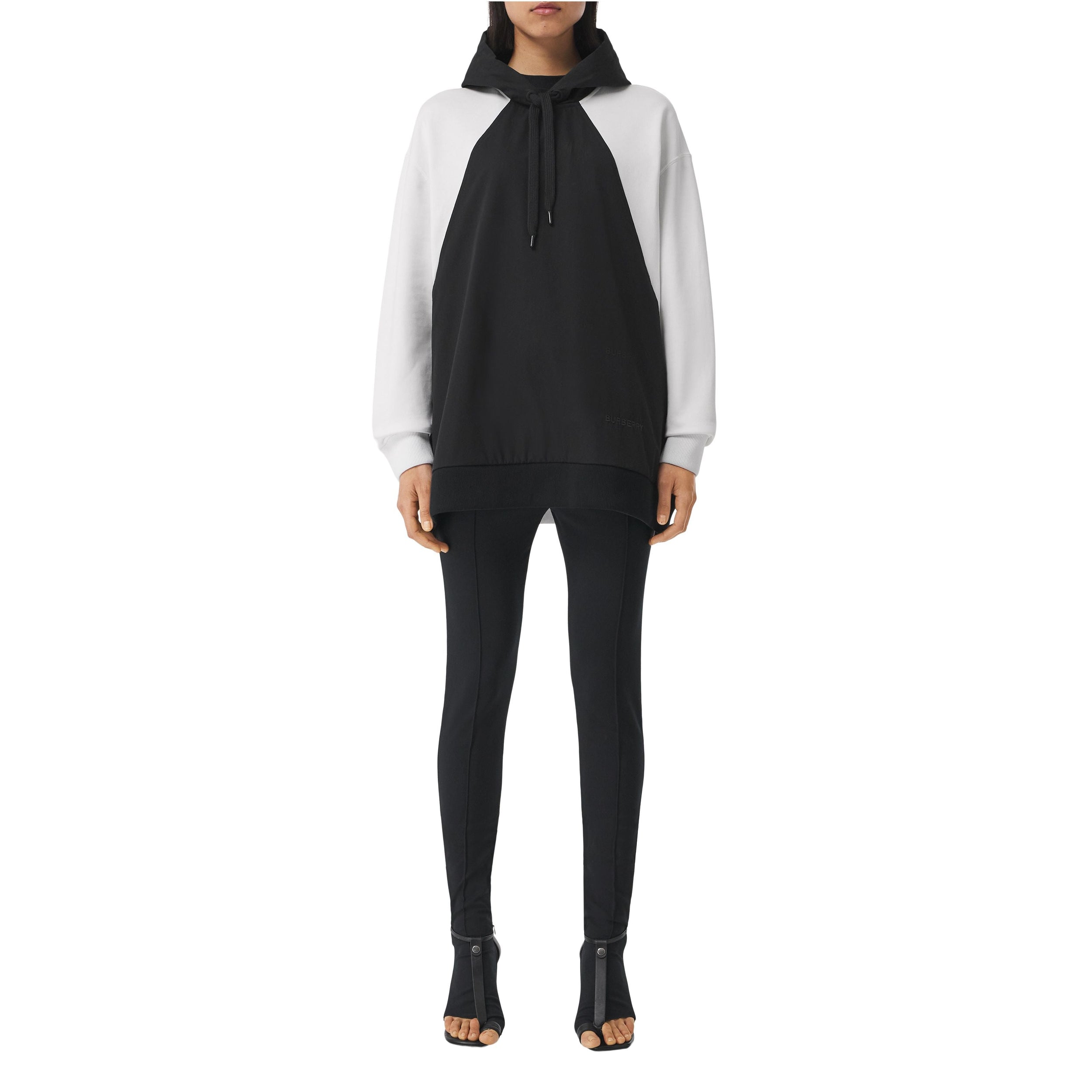 Ce hoodie oversize composé de coton biologique est agrémenté d'une capuche et d'un panneau avant géométrique de couleur différente.