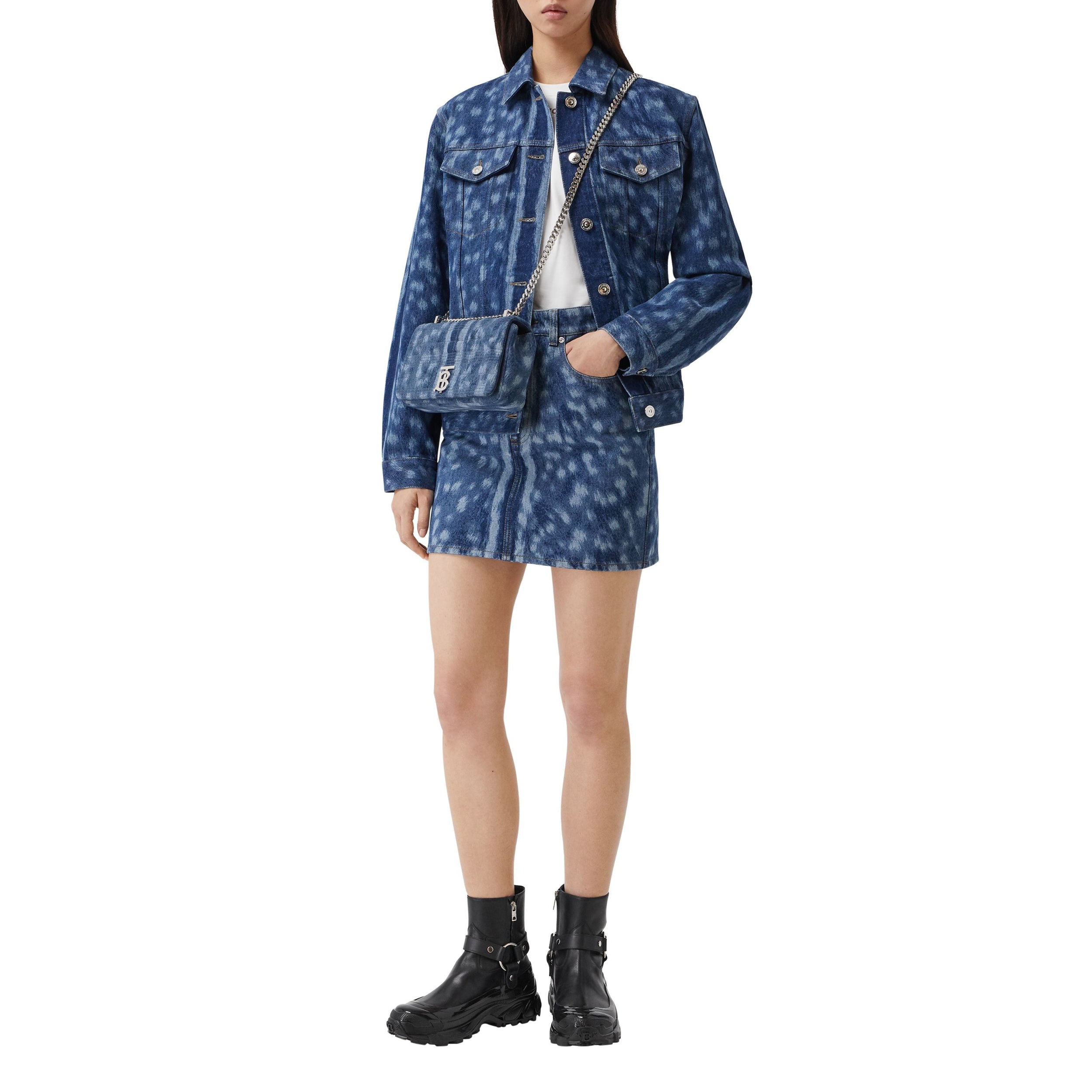 Le sac semi-rigide du défilé en denim matelassé arbore un motif daim délavé. Le modèle est ponctué d'une sangle en chaîne polie et du monogramme Thomas Burberry. Portez-le à l'épaule ou en bandoulière.